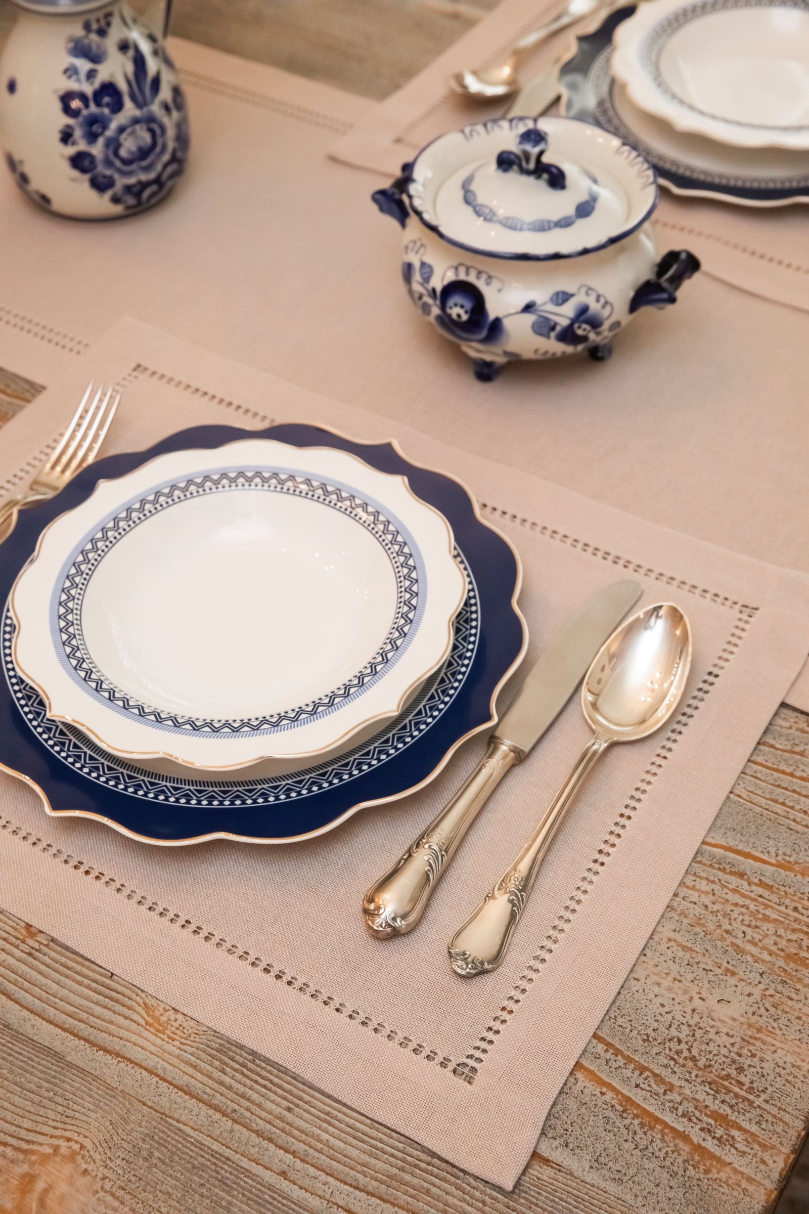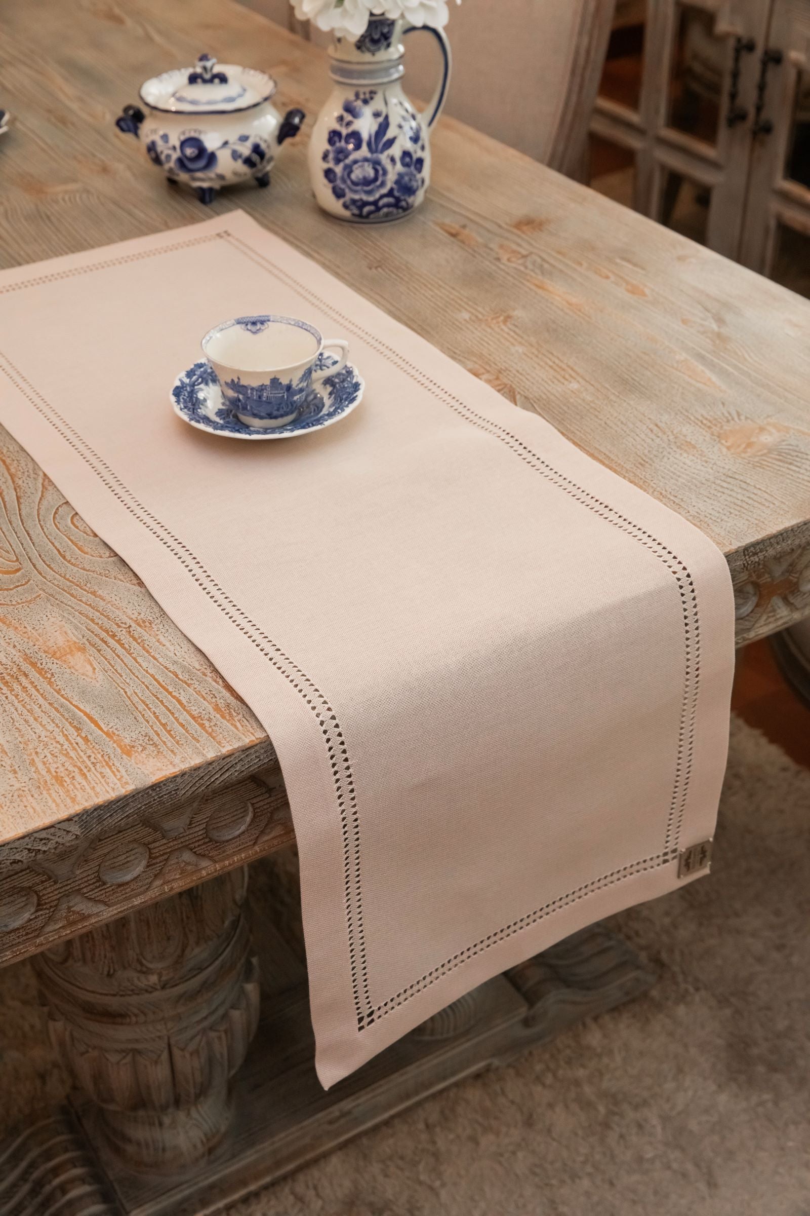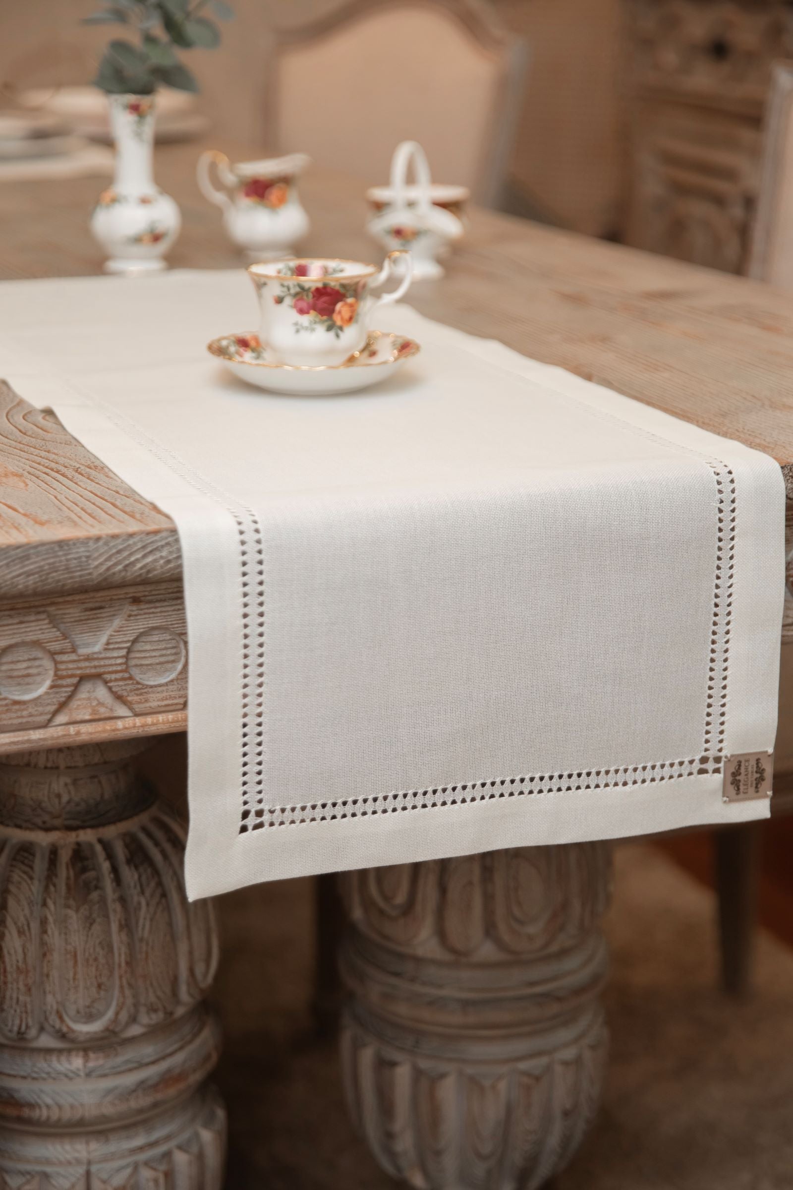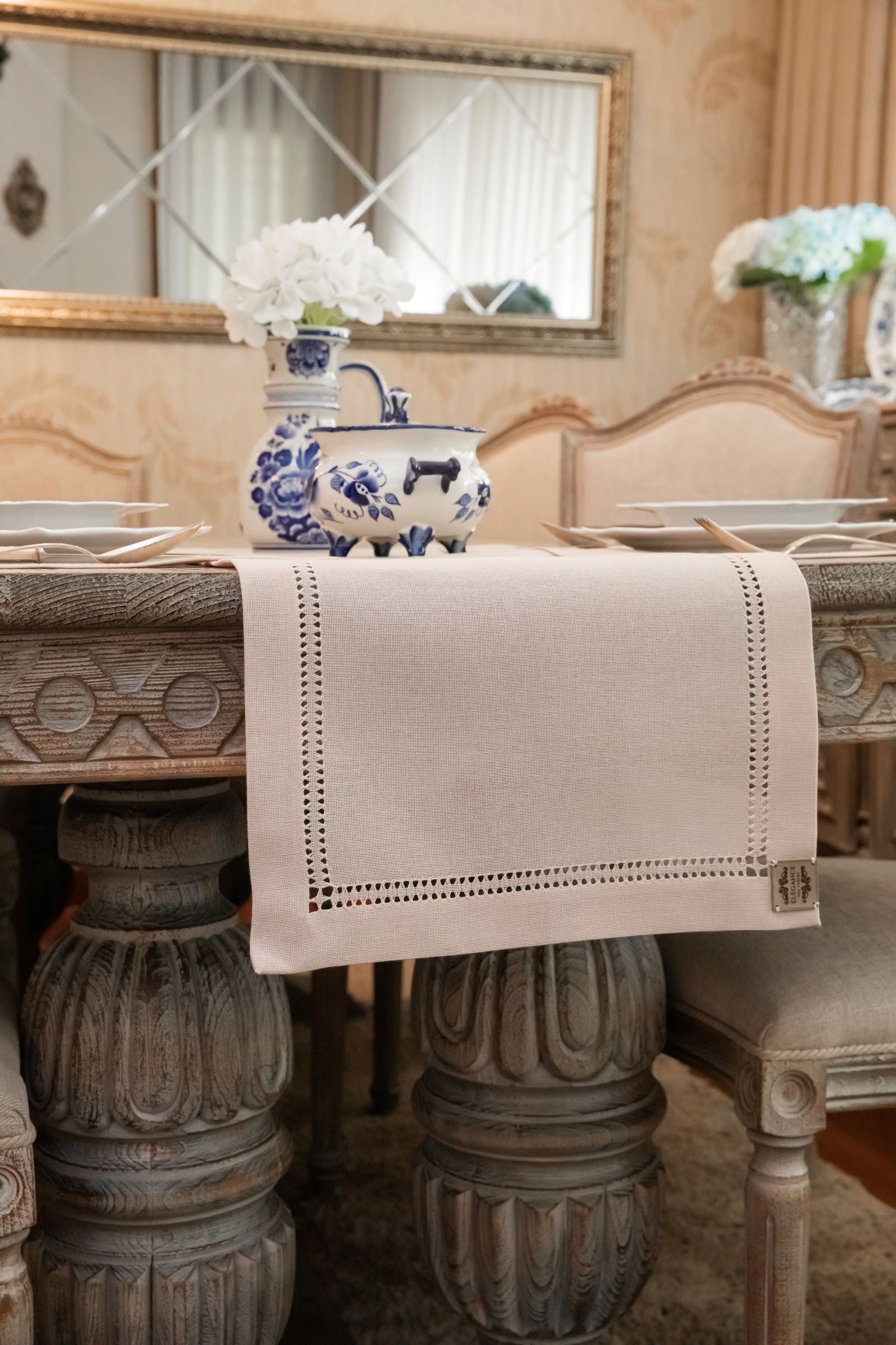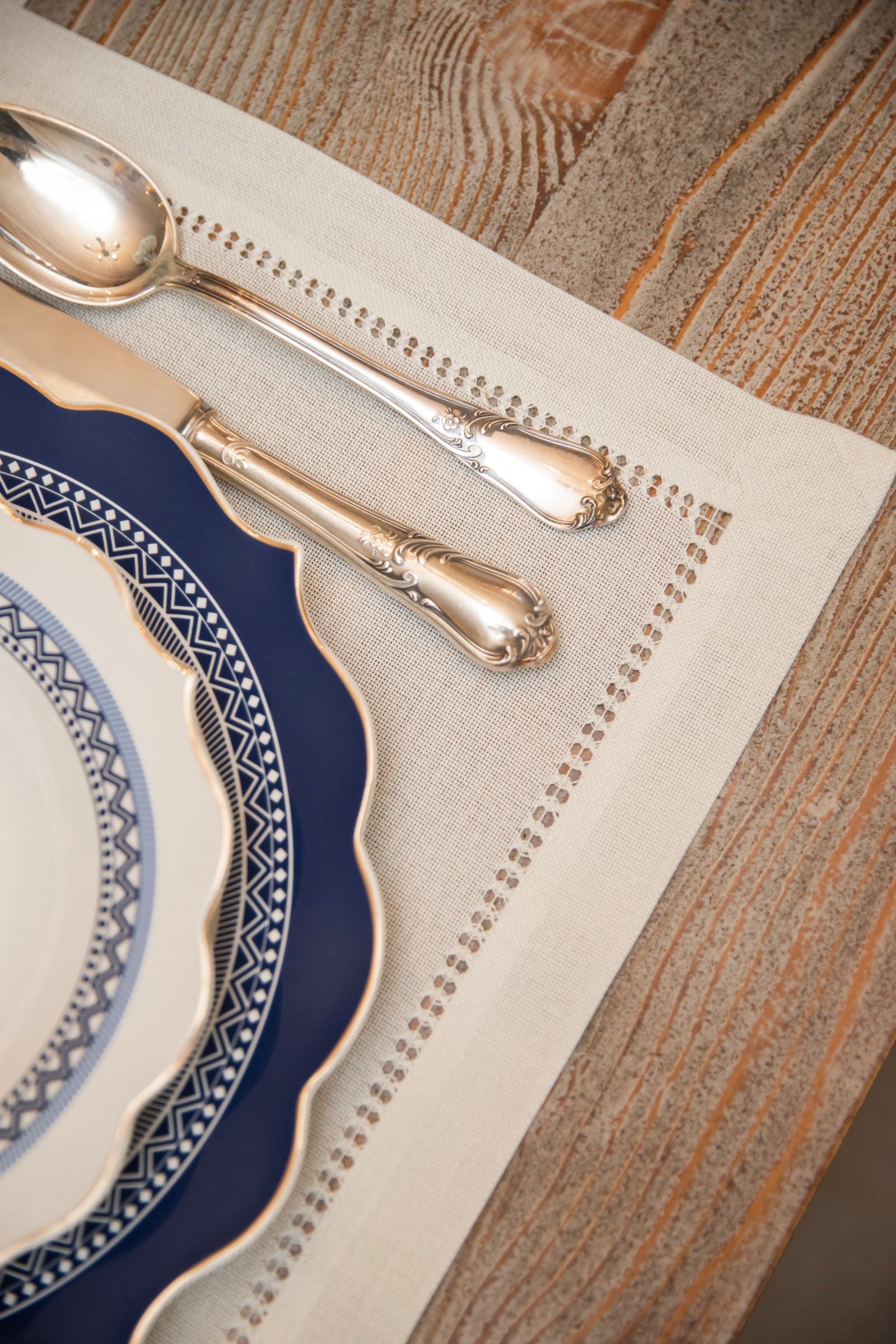 Elevate your dining experience with our exquisite placemat and runner set, featuring delicate handmade Ajouré borders. Each piece is meticulously crafted by skilled artisans, blending traditional craftsmanship with timeless elegance. The intricate Ajouré detailing adds a sophisticated touch, making this set the perfect centerpiece for any dining occasion. Ideal for those who appreciate the art of handmade decor, this set not only enhances your table setting but also brings a sense of refined beauty to your home. Experience the elegance and delicacy of handcrafted design with this elegant set.