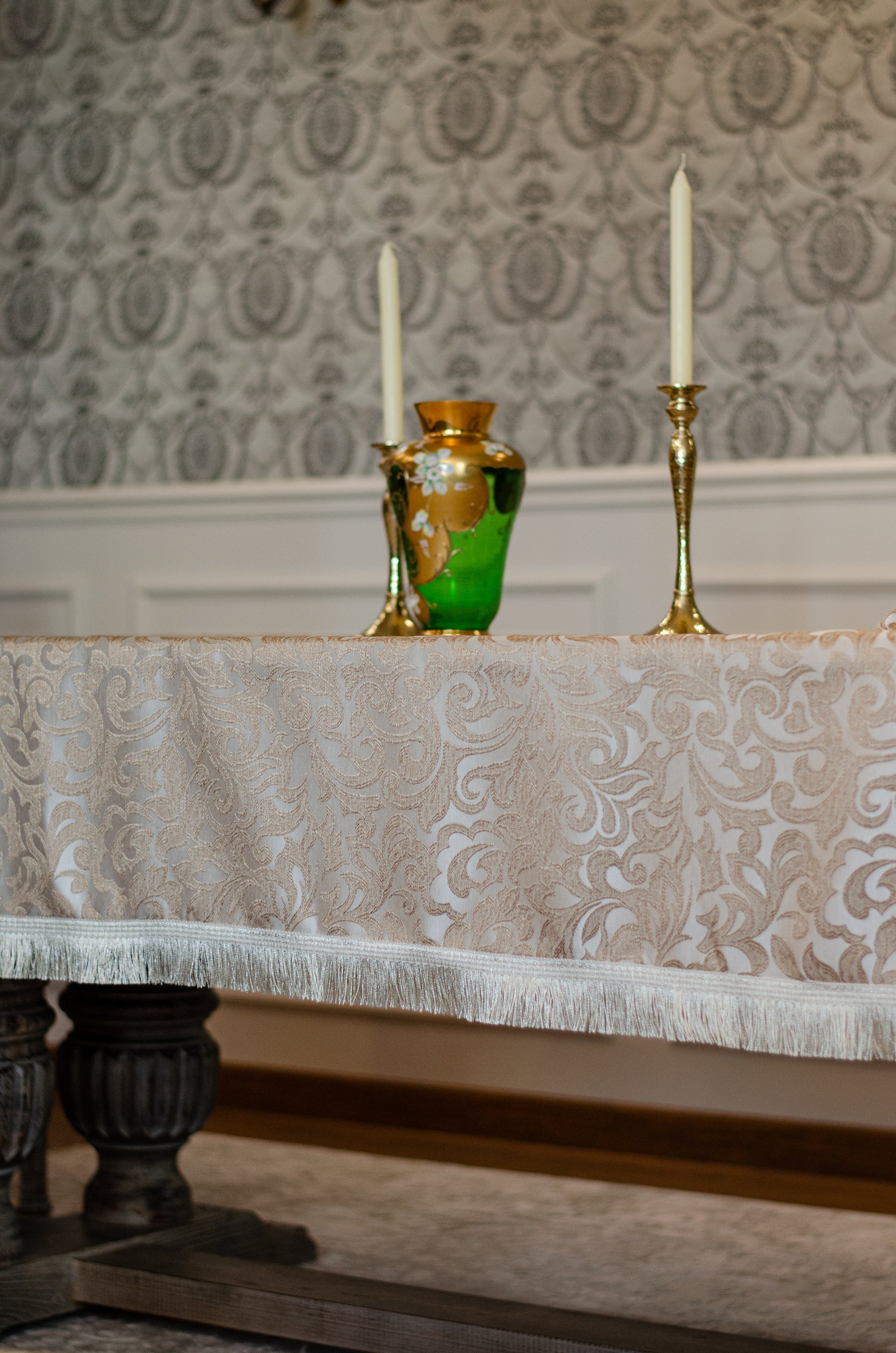 Step into sophistication with the Baroque Elegance tablecloth, a sapphire masterpiece from Élégance Des Tables featuring a luminous sheen. It is designed to be a luxurious décor to your dining room. Shop now for timeless luxury with this exquisite tablecloth.