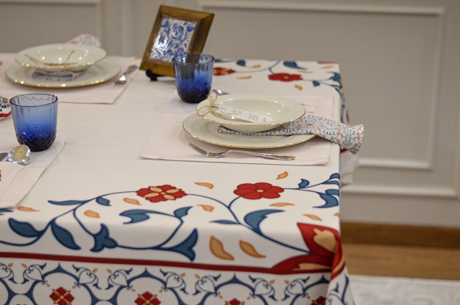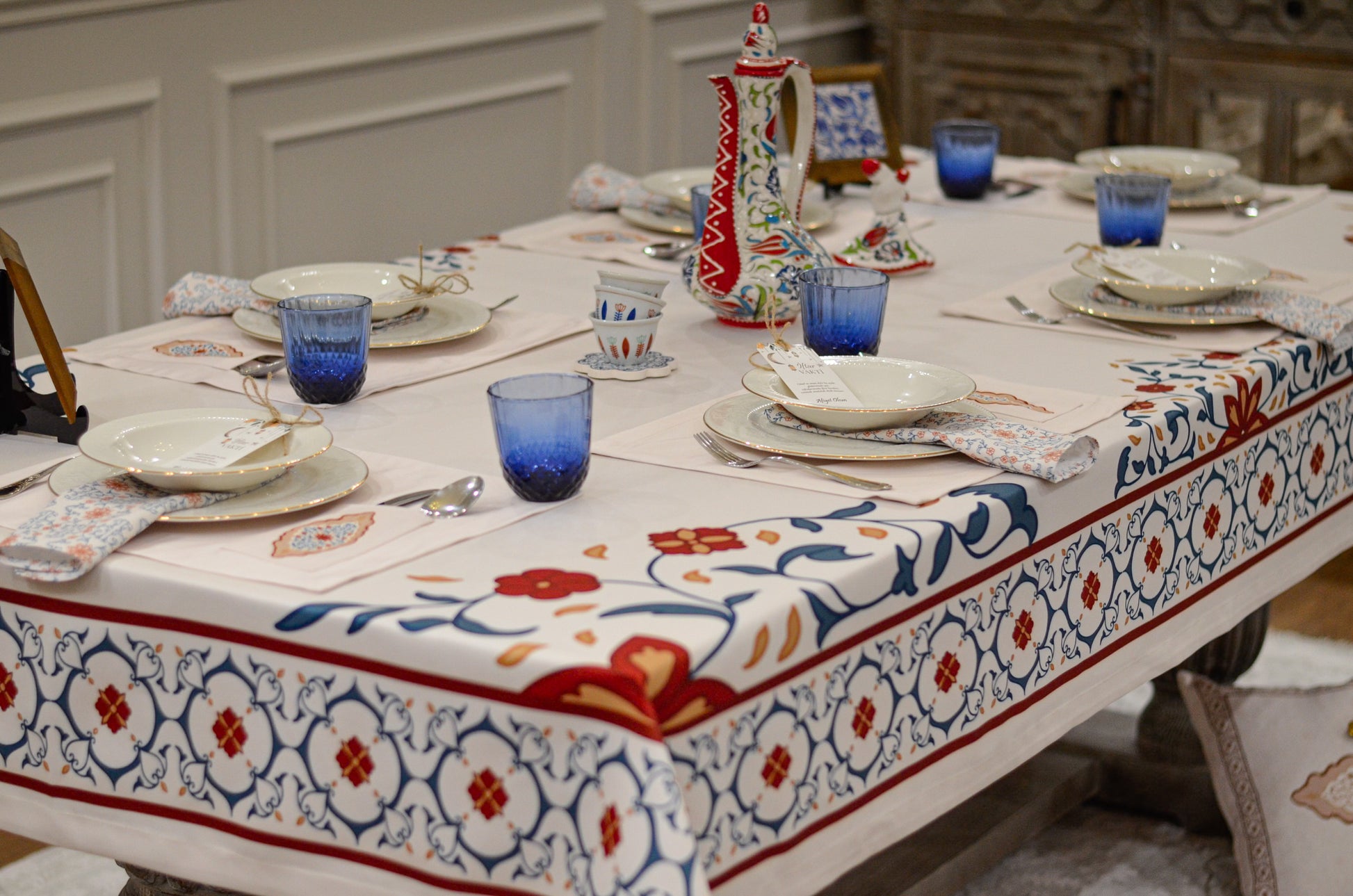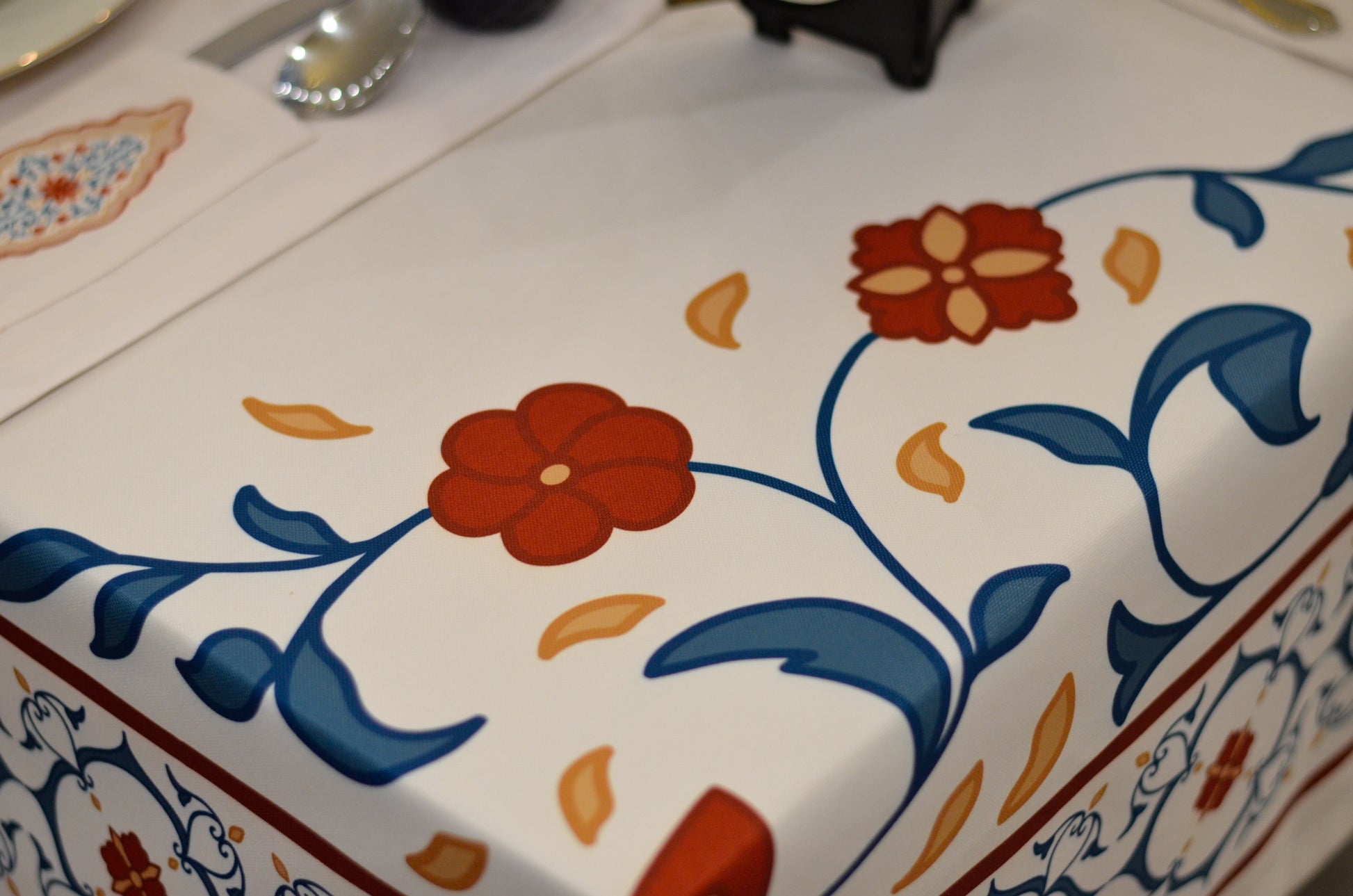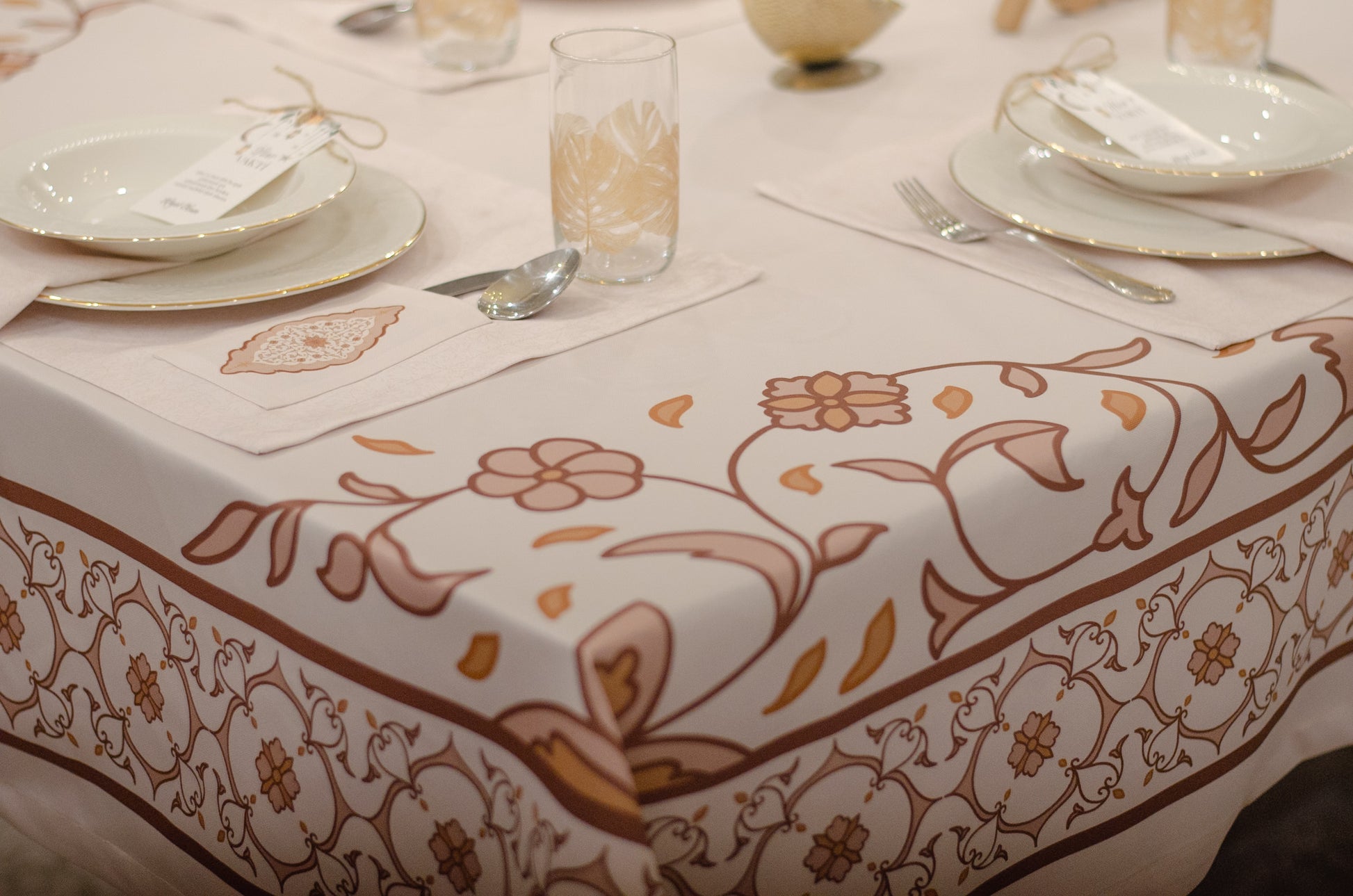 Enrich your Ramadan gatherings with Zahra, a tablecloth from Élégance Des Tables that blends timeless elegance with beautiful floral patterns. Adorned with intricate motifs and graceful designs, Zahra brings a sense of serenity and warmth to your Iftar setting.