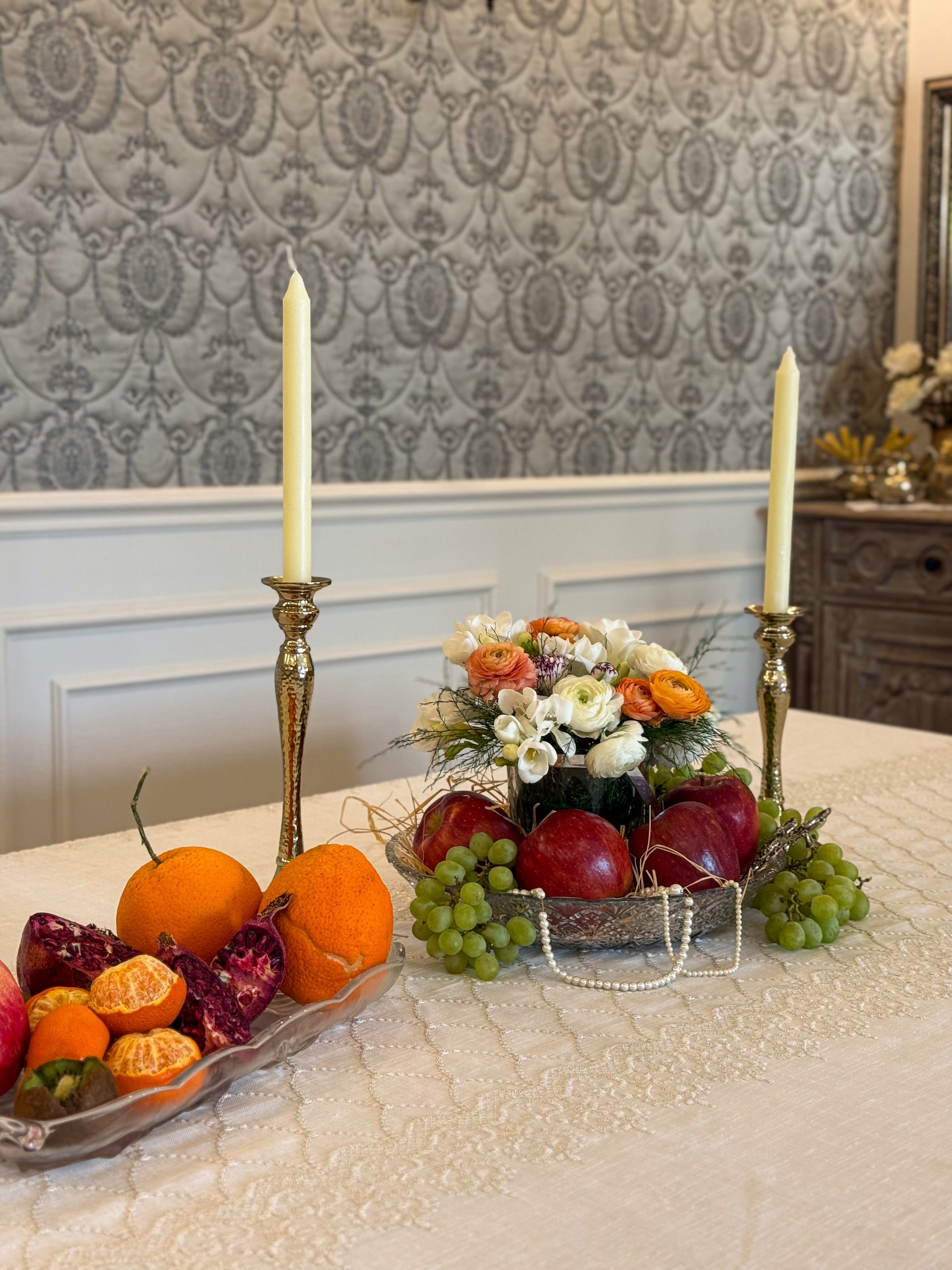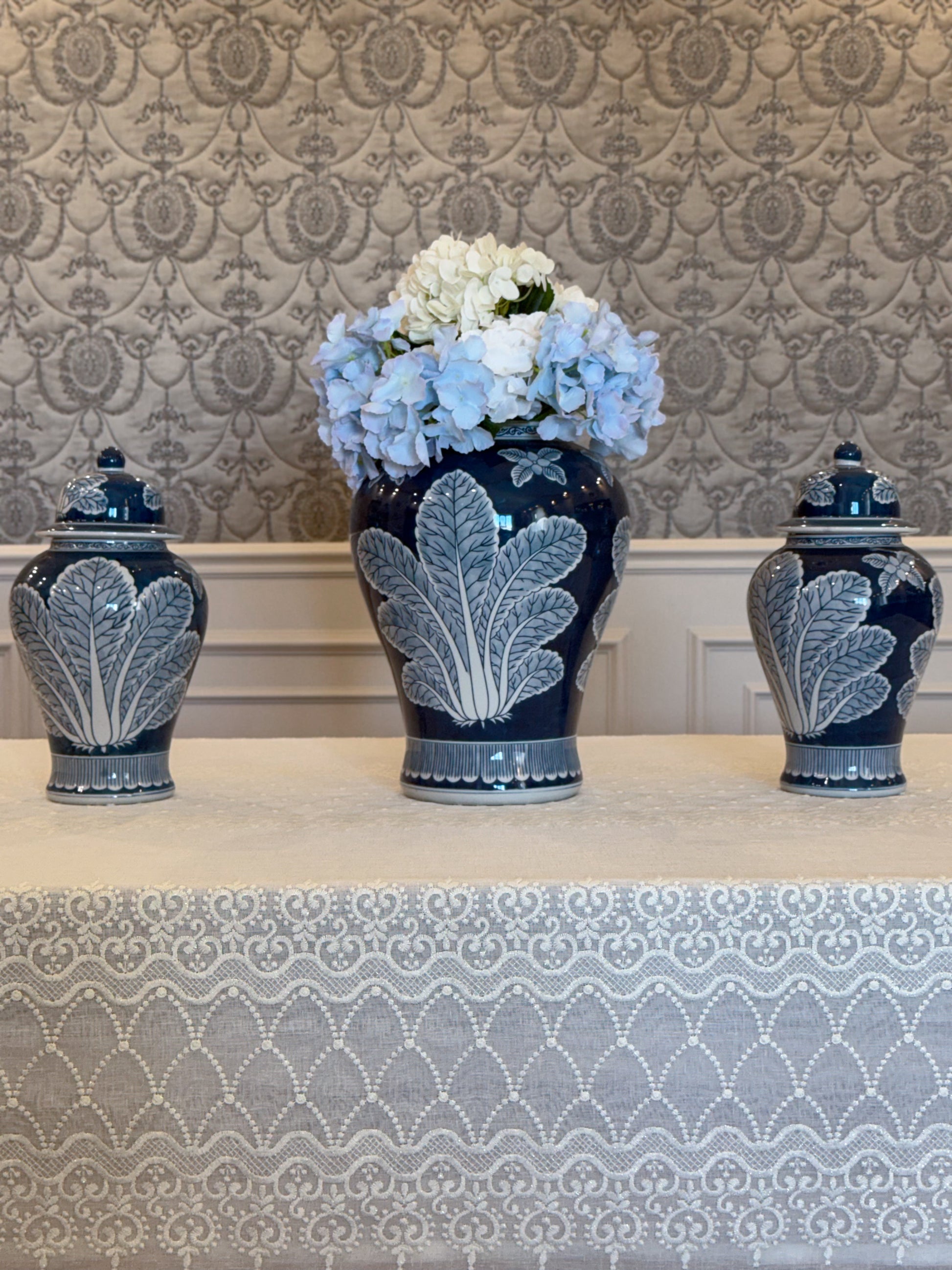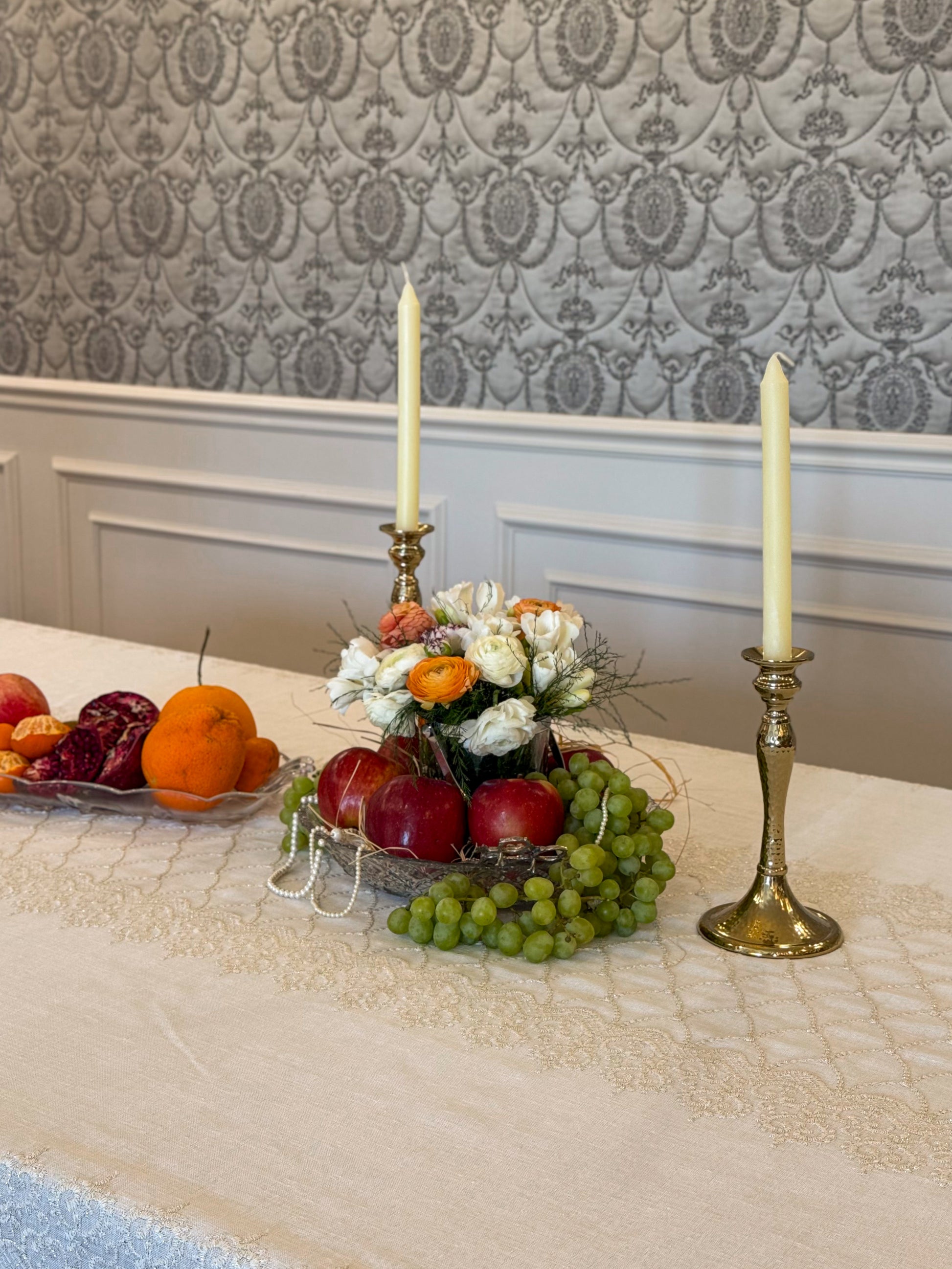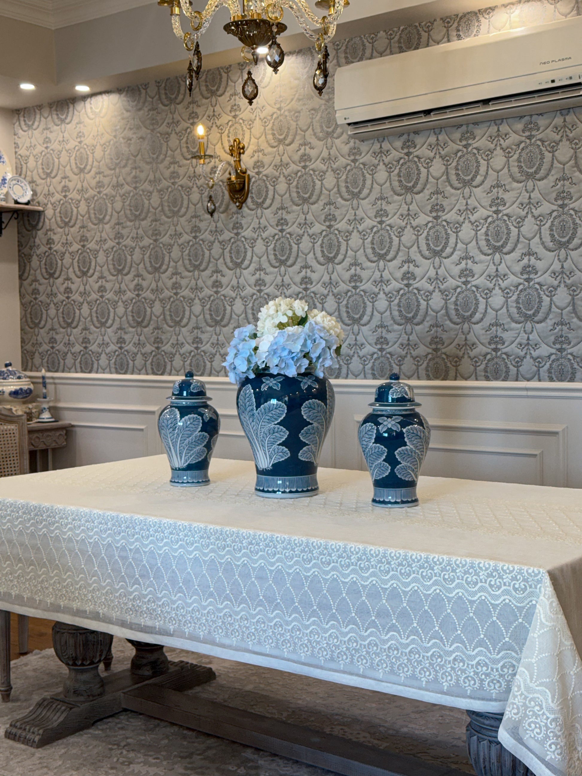 Turn your table into a statement of natural elegance with the Regal Lace tablecloth from Élégance Des Tables. Crafted from premium linen and embroidered with rich lace pattern, it blends organic charm with timeless sophistication. Shop now to bring refined beauty and effortless style to your dining space. It is layered with “Linen” tablecloth underneath, but it is sold separately.