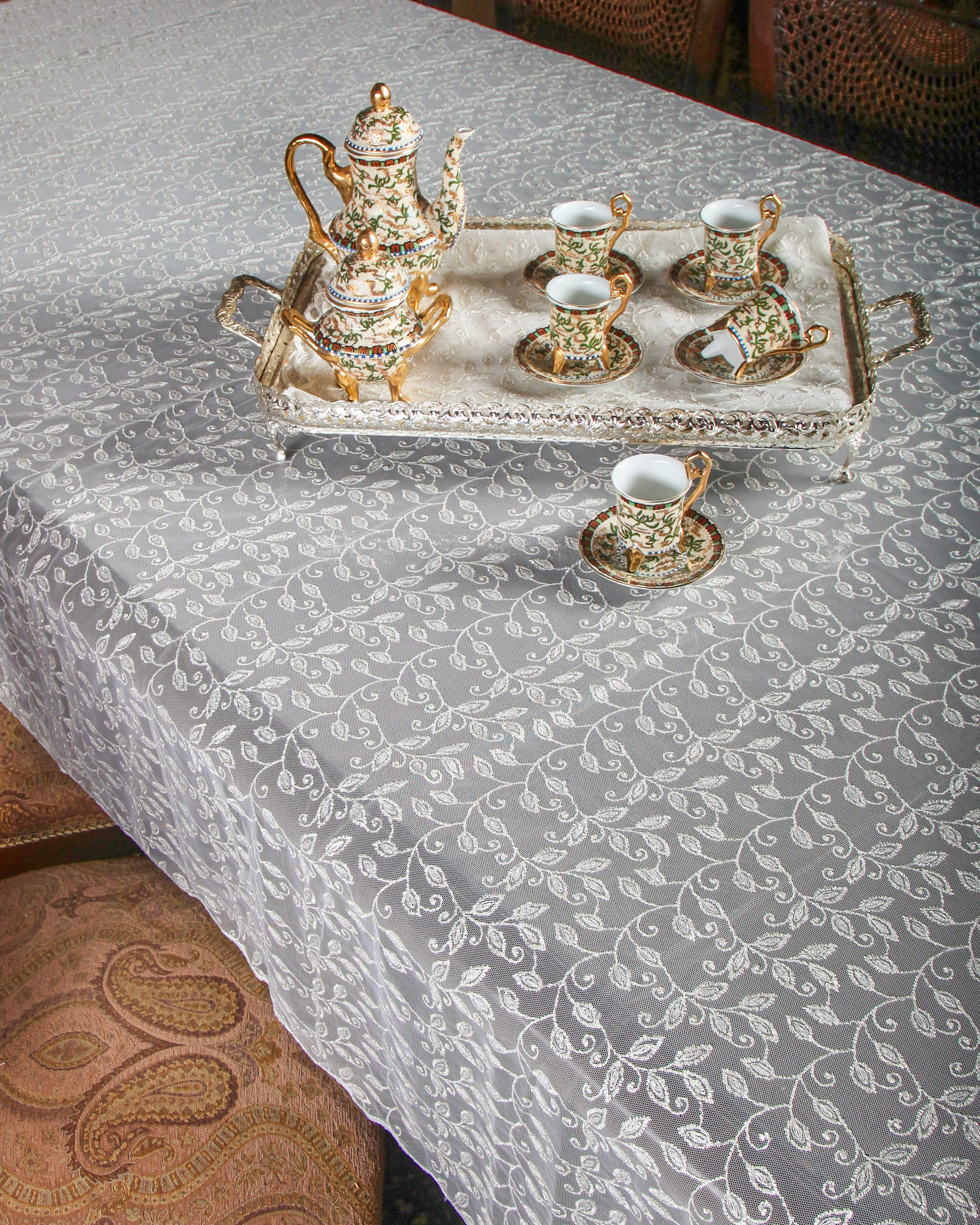 Wrap your table in elegance with Delicate vines, a stunning lace tablecloth from Élégance Des Tables. This exquisite tablecloth adds a touch of timeless elegance to any dining room, or special event. Perfect for creating an inviting atmosphere, Delicate vines is a lace masterpiece that enhances every dining experience with sophistication and style. Shop now to elevate your table setting with this elegant, high-quality tablecloth.