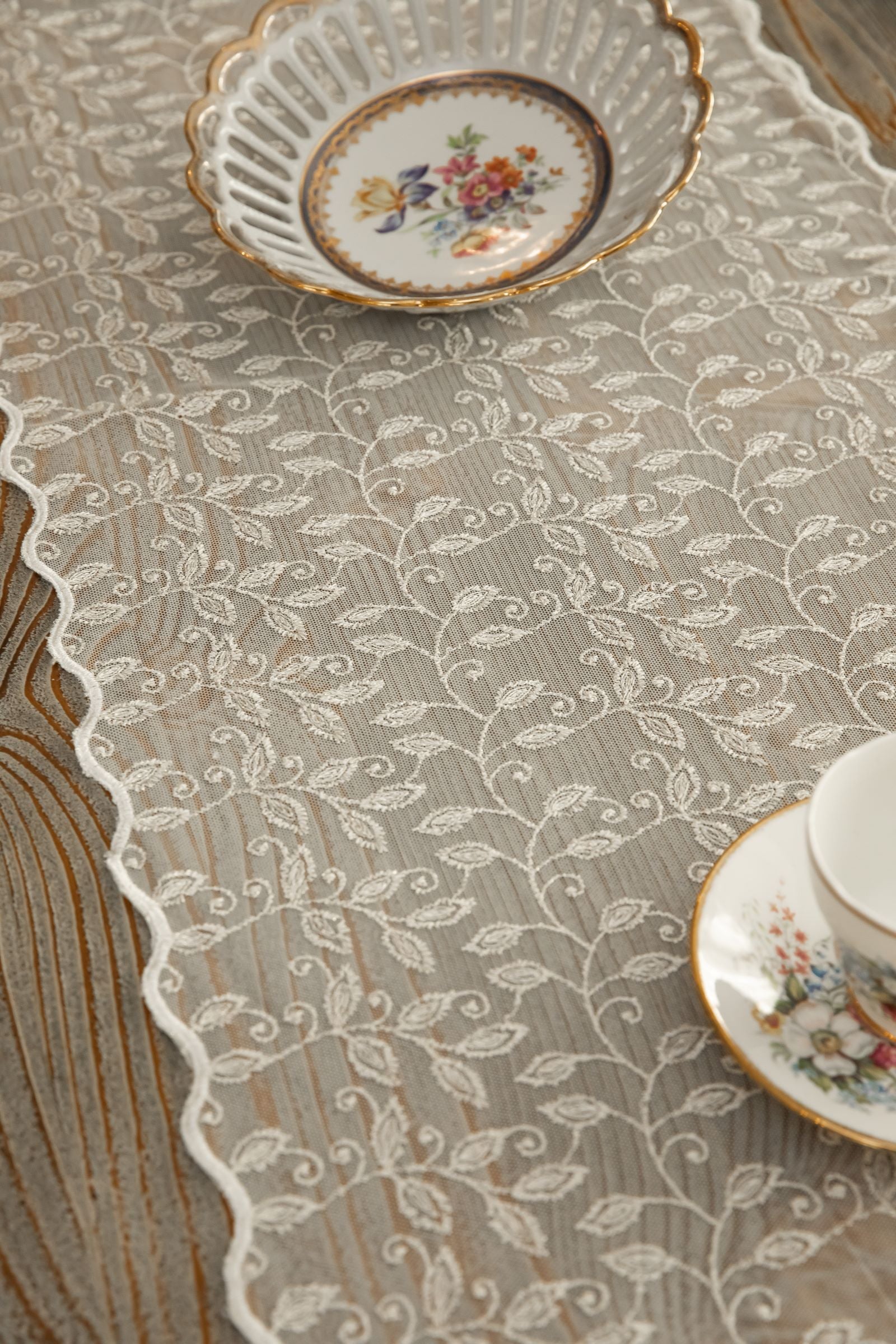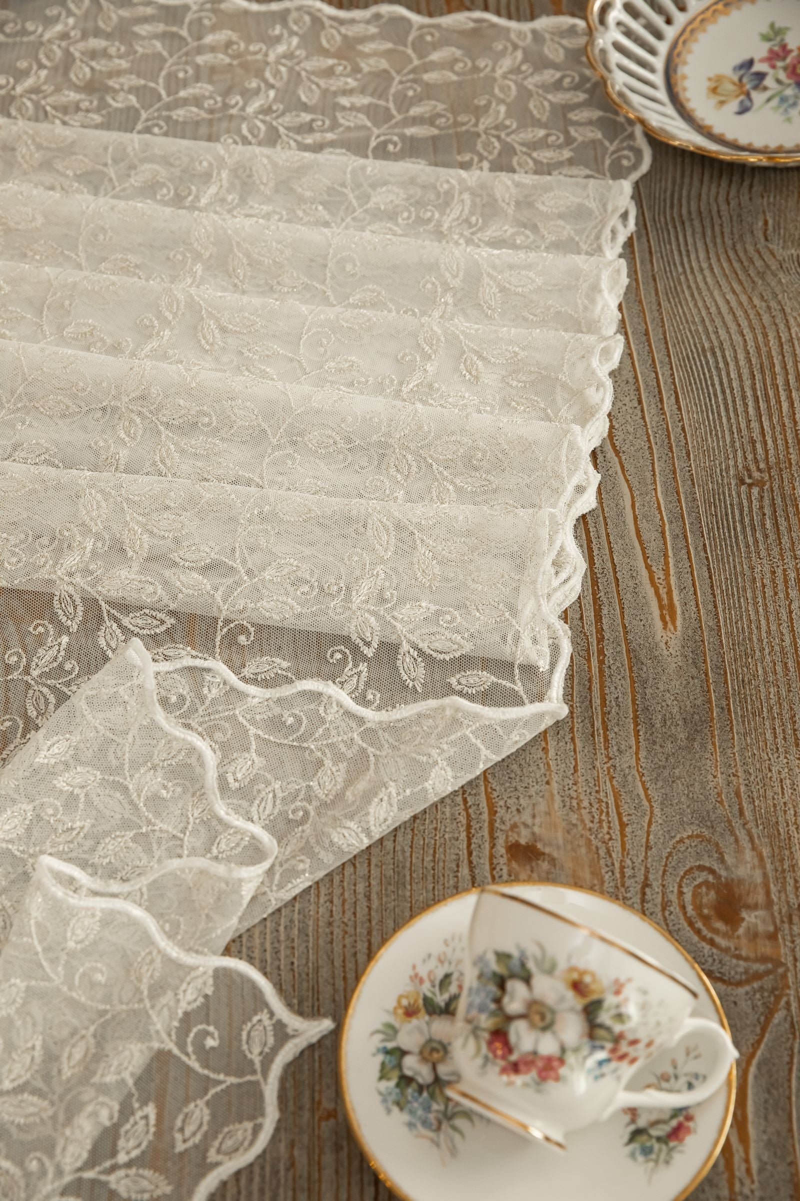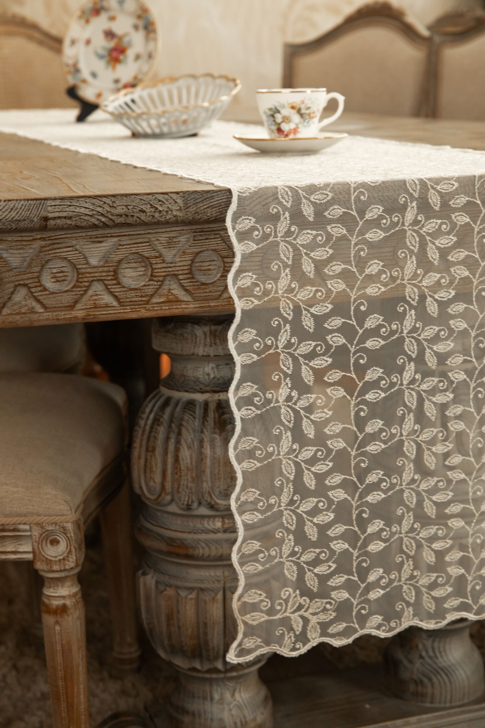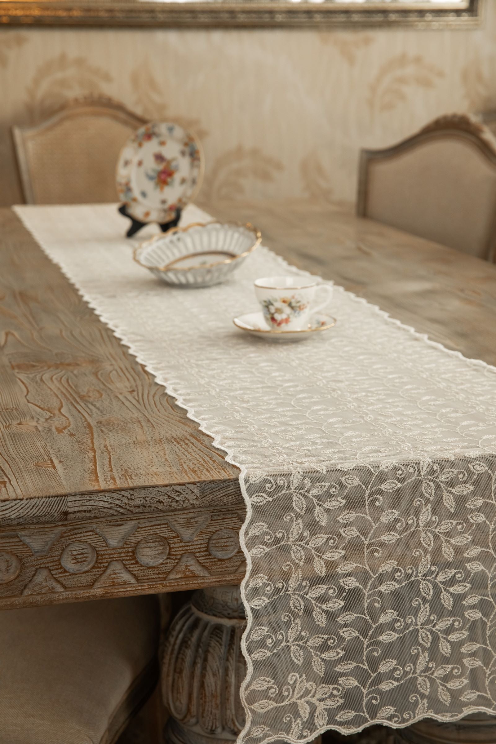 Wrap your table in elegance with Delicate vines, a stunning lace runner from Élégance Des Tables. This exquisite runner adds a touch of timeless elegance to any dining room, or special event. Perfect for creating an inviting atmosphere, Delicate vines is a lace masterpiece that enhances every dining room with sophistication and style. Shop now to elevate your table setting with this elegant, high-quality runner.