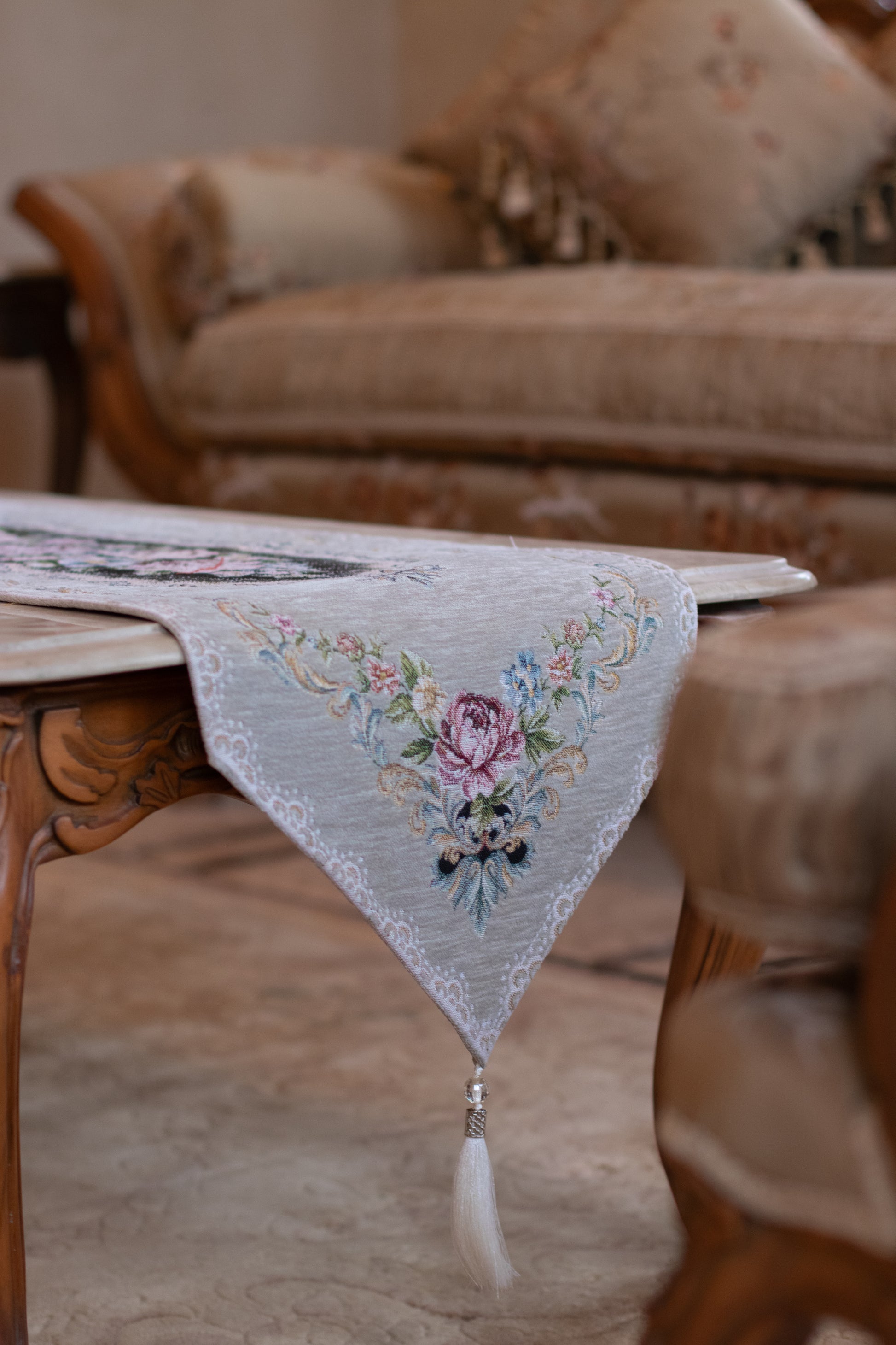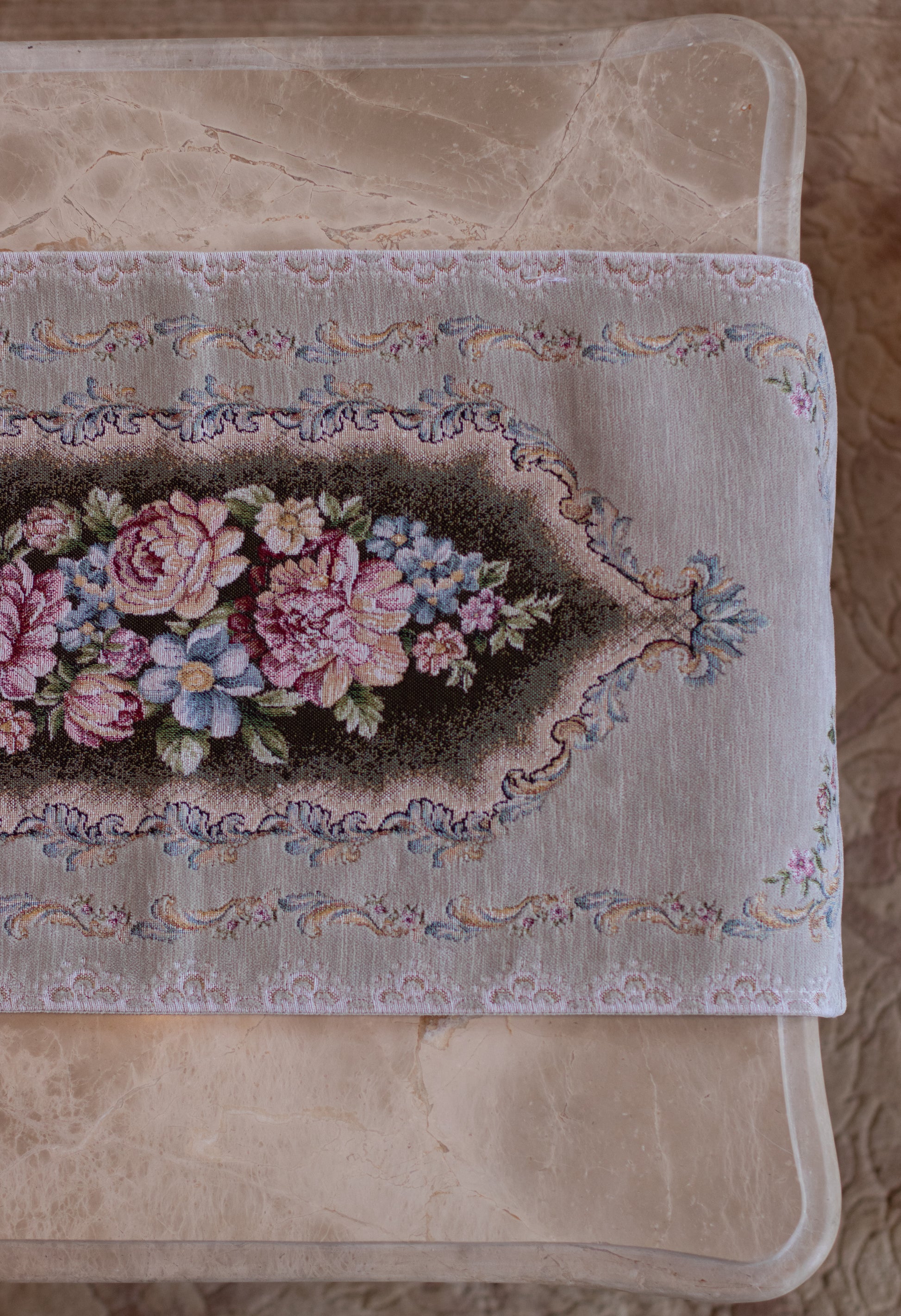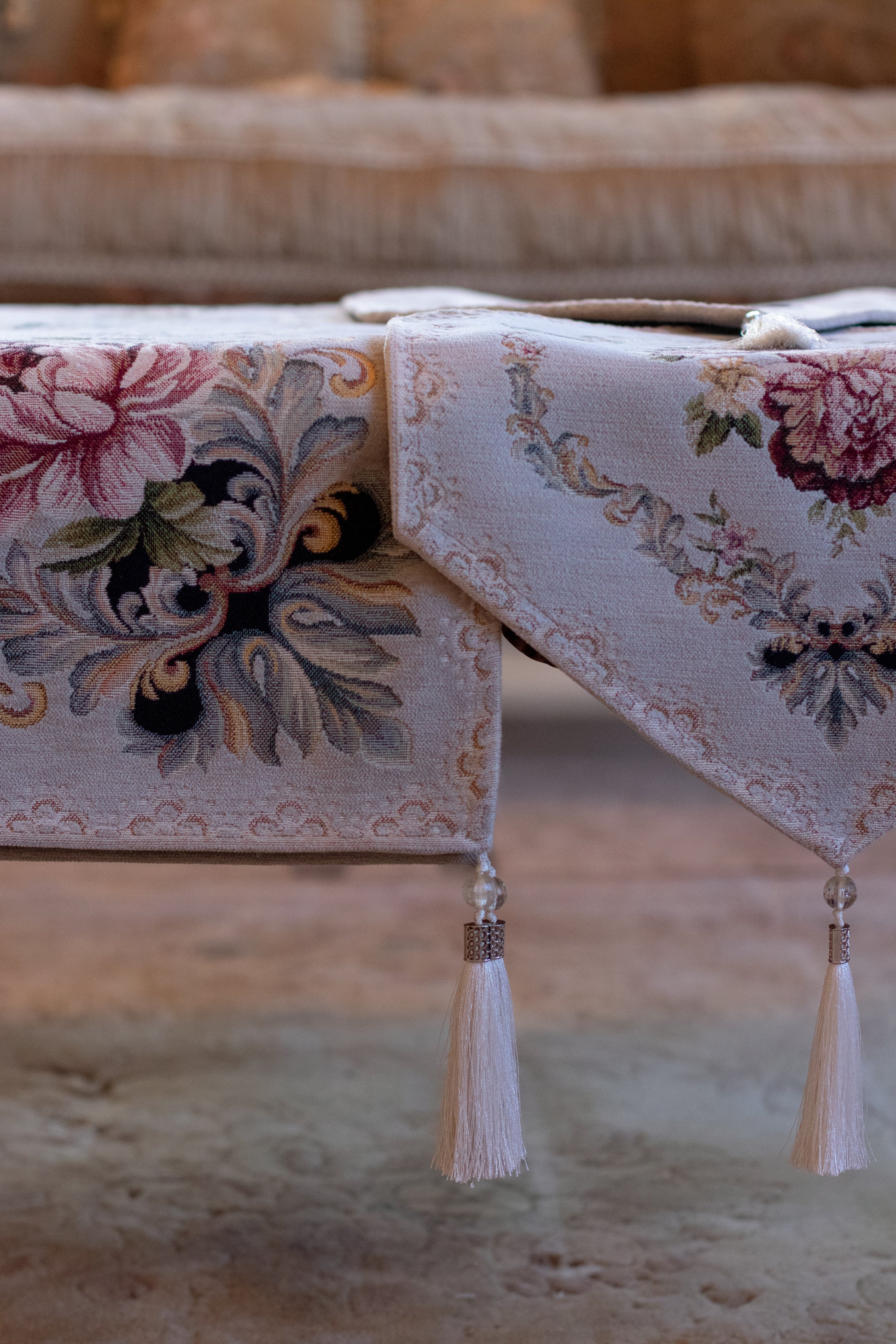 Add a touch of refined charm to your home with the Roses Bouquet set from Élégance Des Tables. Featuring an elegant floral bouquet in the center, this gobelin-crafted set will bring sophistication to consoles, side tables, and dining settings, offering a decorative flourish that blends tradition with timeless style.