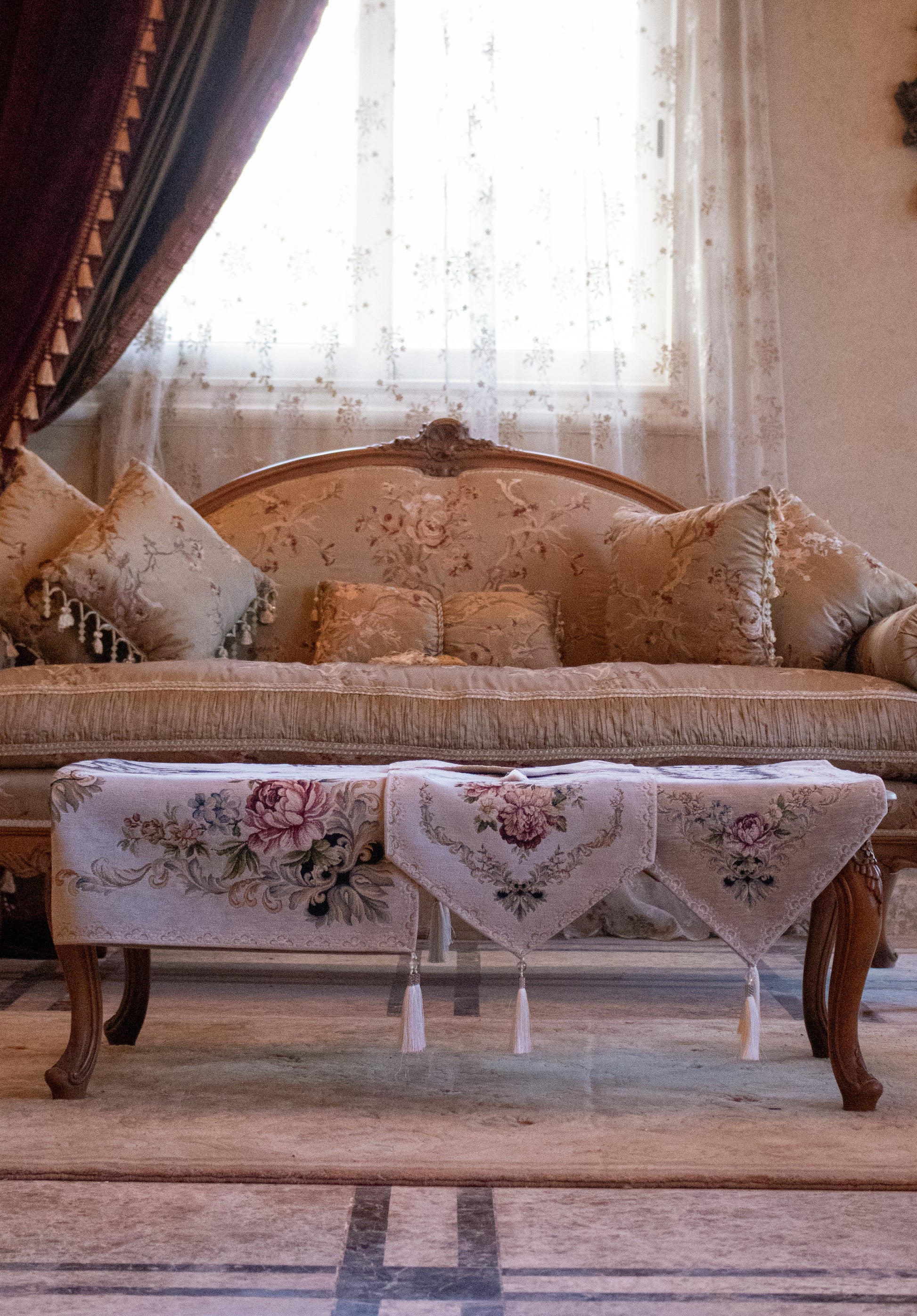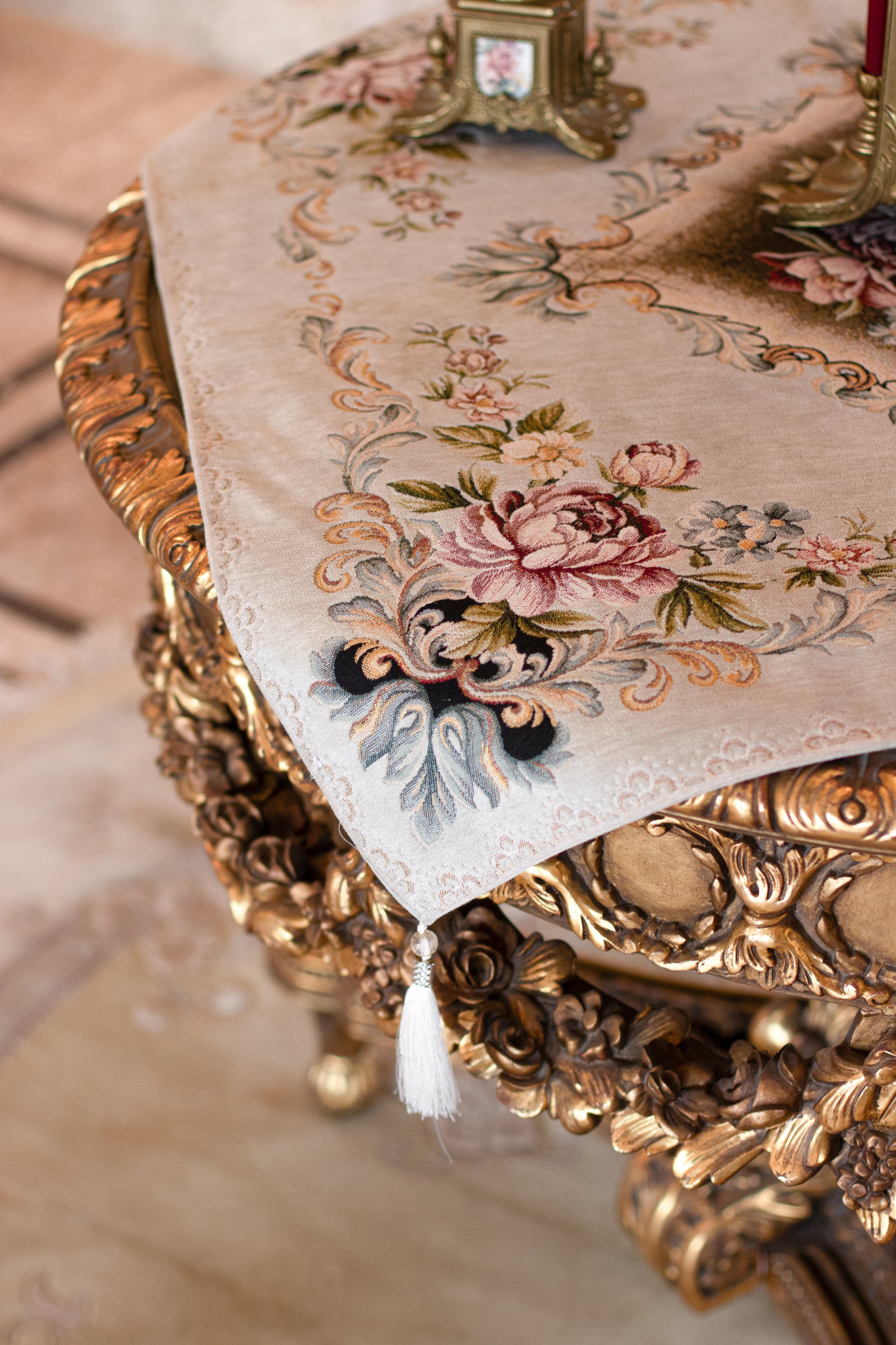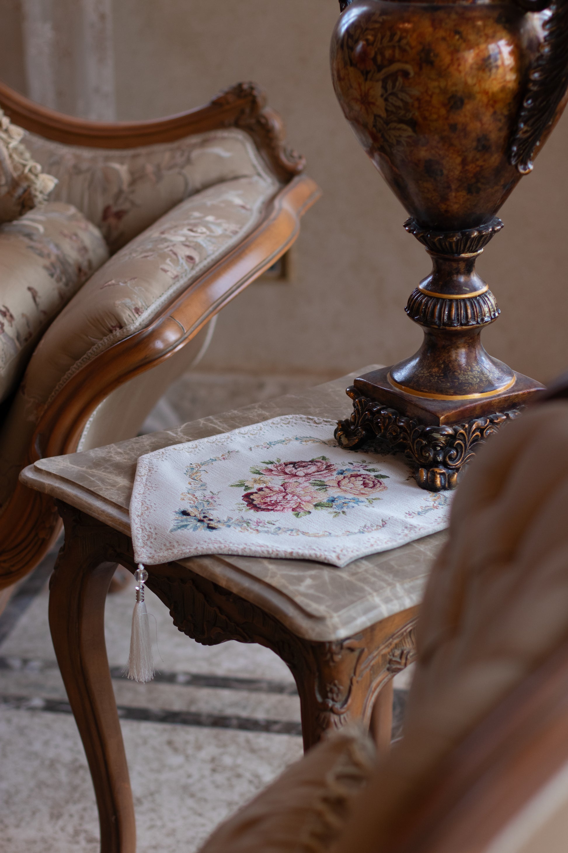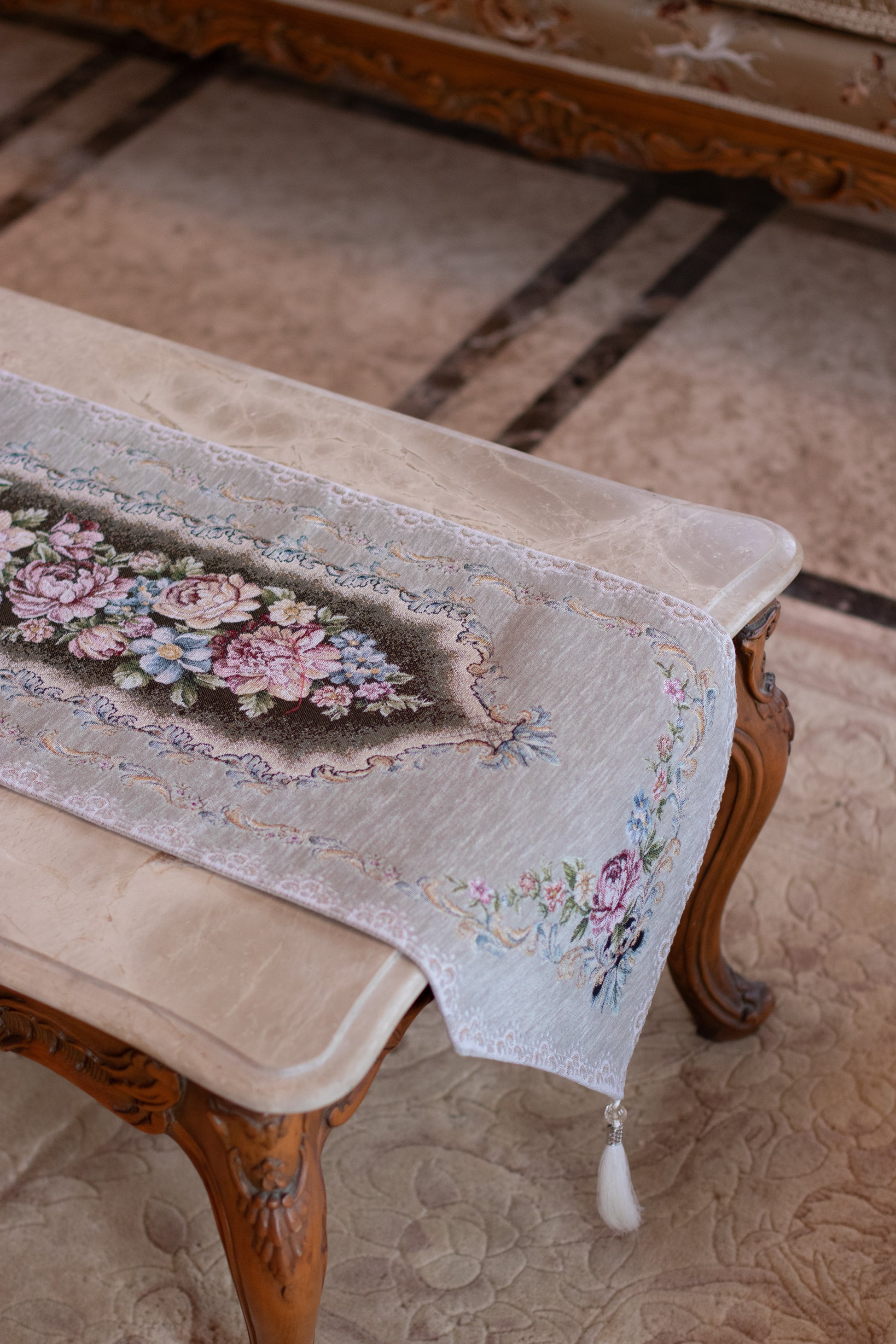 Add a touch of refined charm to your home with the Roses Bouquet set from Élégance Des Tables. Featuring an elegant floral bouquet in the center, this gobelin-crafted set will bring sophistication to consoles, side tables, and dining settings, offering a decorative flourish that blends tradition with timeless style.