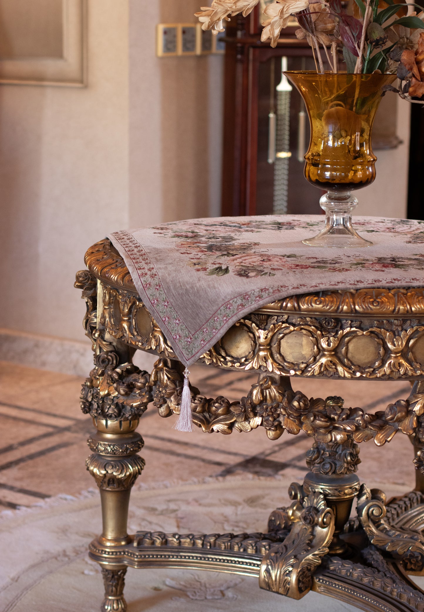 Discover refined charm with the Classic Roses tablecloth from Élégance Des Tables. Inspired by classical floral motifs, Classic Roses tablecloth brings a delicate harmony of beauty and balance to your dining space. Its intricate gobelin floral embroidery creates a timeless centerpiece, perfect for both special gatherings and everyday moments. Designed for those who appreciate subtle luxury and artistic craftsmanship, the Classic Roses tablecloth adds warmth, texture, and a poetic touch to any interior. Shop now to enrich your home with soft elegance and floral finesse.