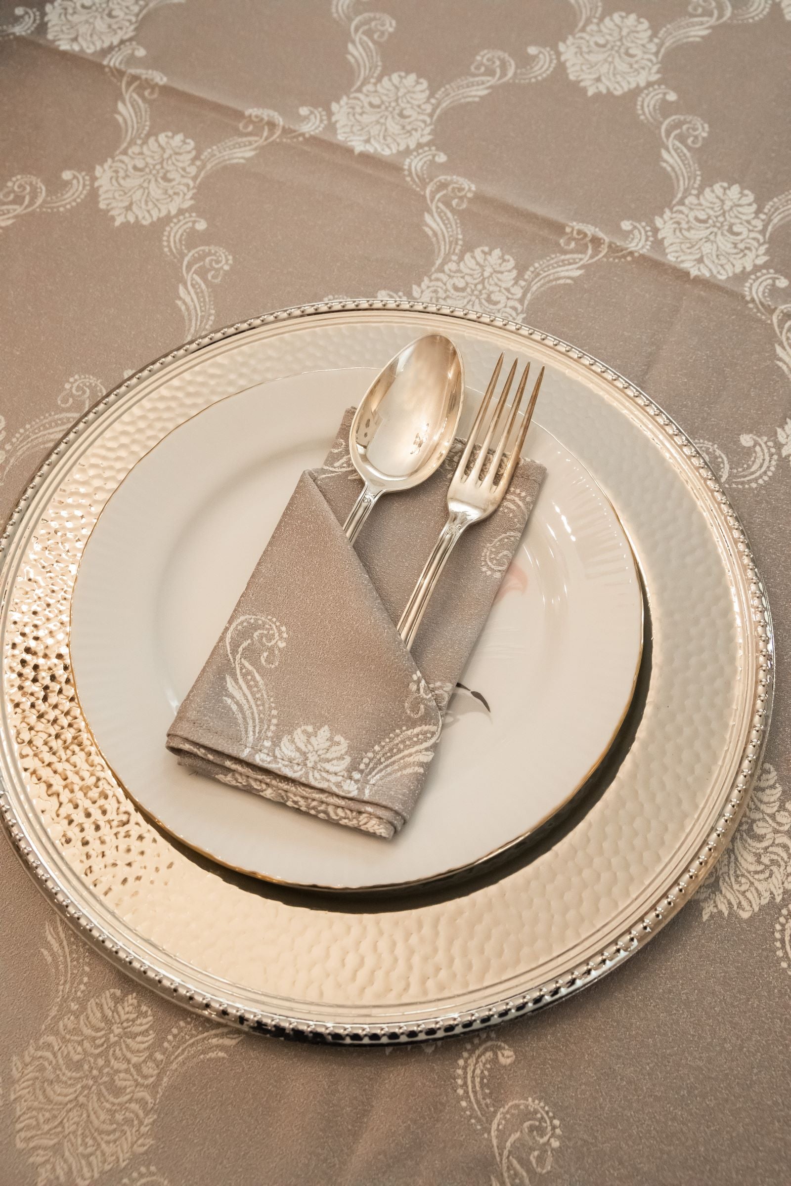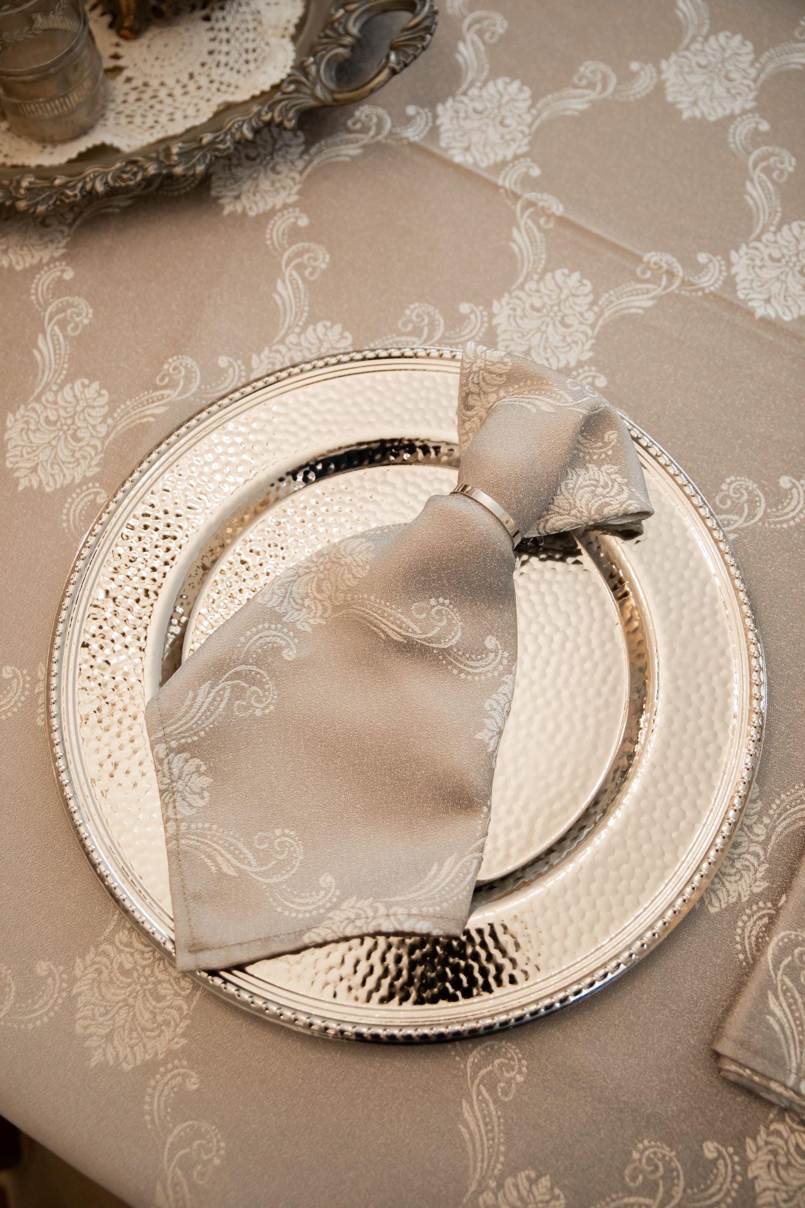 Elevate your table setting with our Majestic Damask napkins, designed to perfectly complement the Majestic Damask tablecloth. These napkins feature the same royal damask pattern, bringing a touch of regal elegance to every meal. Ideal for formal dinners, special occasions, or simply adding a sense of tradition and classic style to your everyday dining, the Majestic Damask napkins are the perfect finishing touch to your decor. Crafted with the same high-quality materials, they ensure a cohesive and luxurious dining experience. Shop now to complete your table with these exquisite napkins that embody elegance and refinement.
