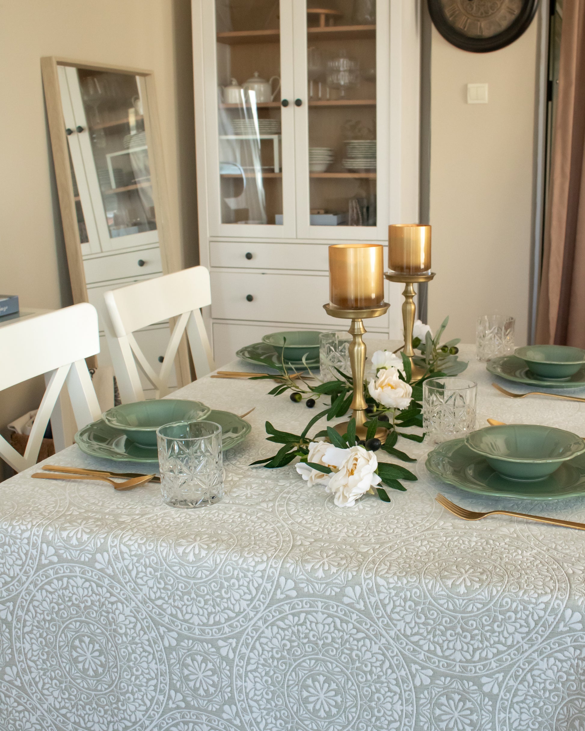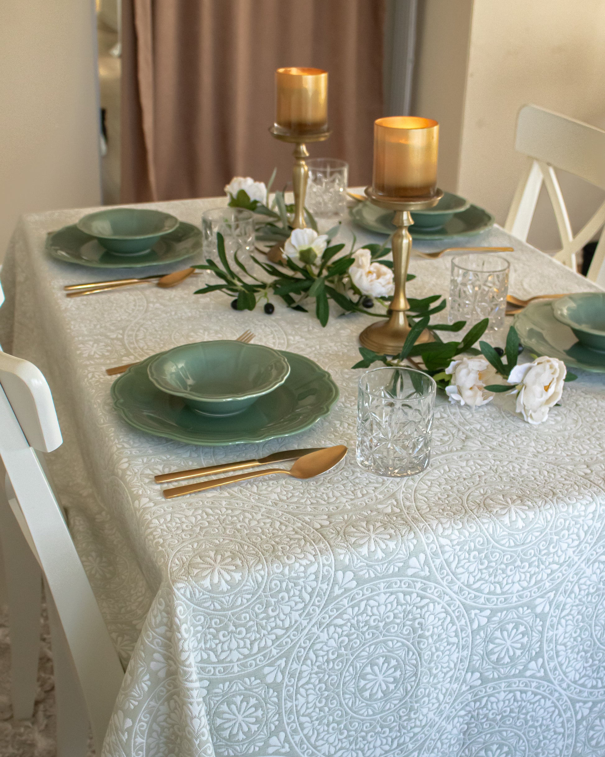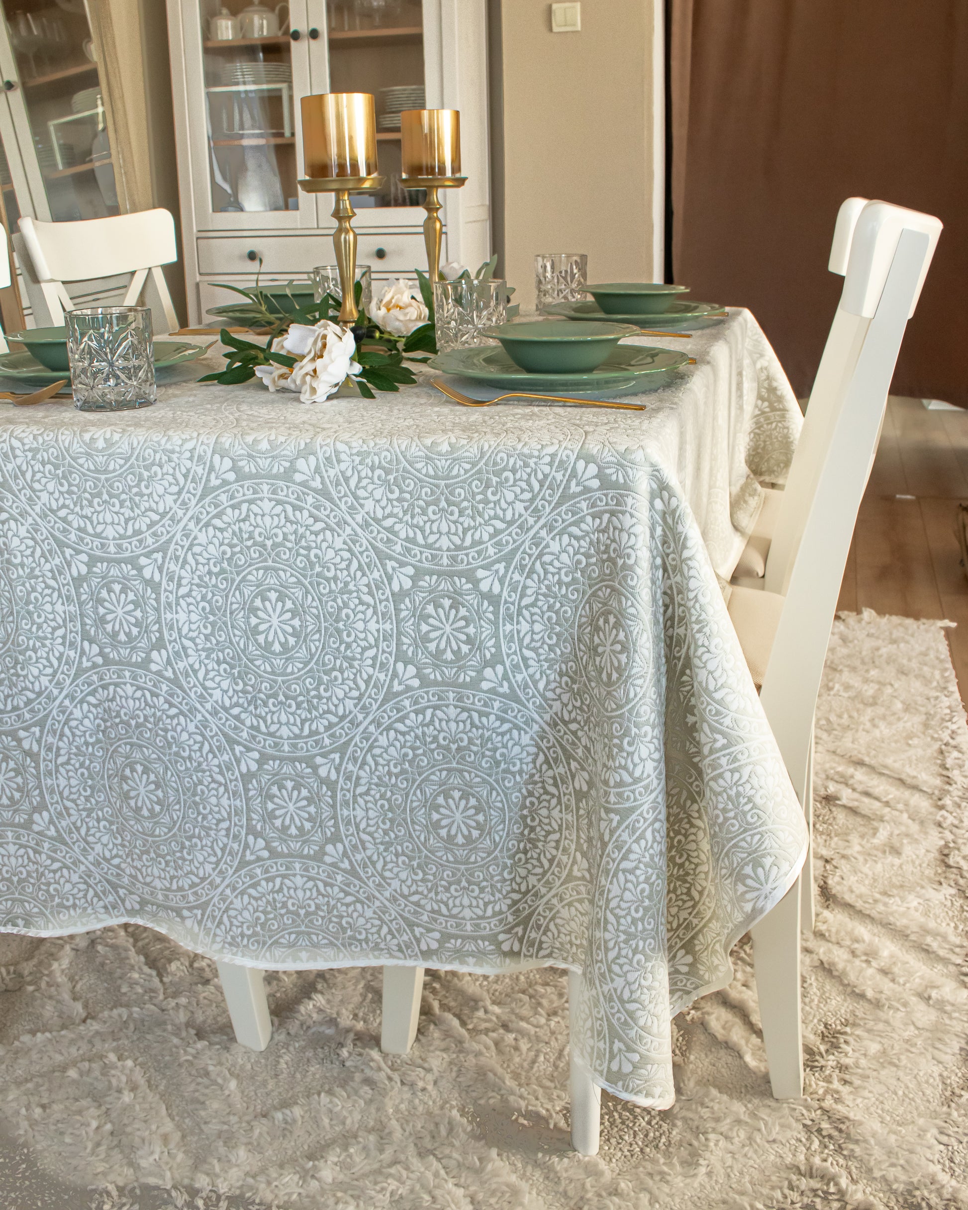 Transform your dining experience with Medallion, a double faced contemporary take on traditional medallion motifs from Élégance Des Tables. This tablecloth blends classic elegance with modern aesthetics, creating a stylish, sophisticated addition to your table. With its balanced floral and geometric patterns, Medallion adds a touch of refined charm to any dining setting, perfect for both everyday dining and special occasions. Elevate your space with this exquisite, high-quality tablecloth that seamlessly combines tradition with a modern twist.
