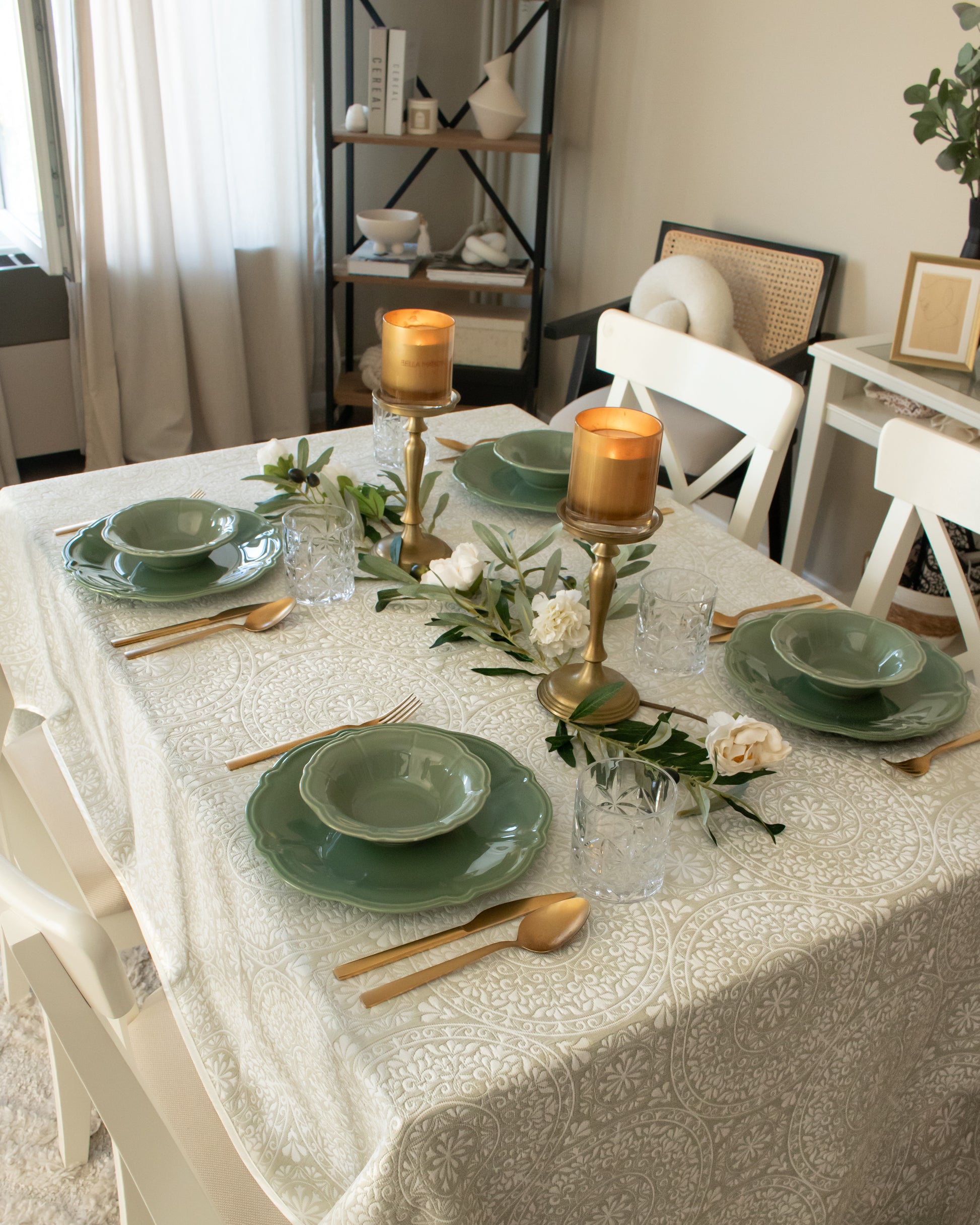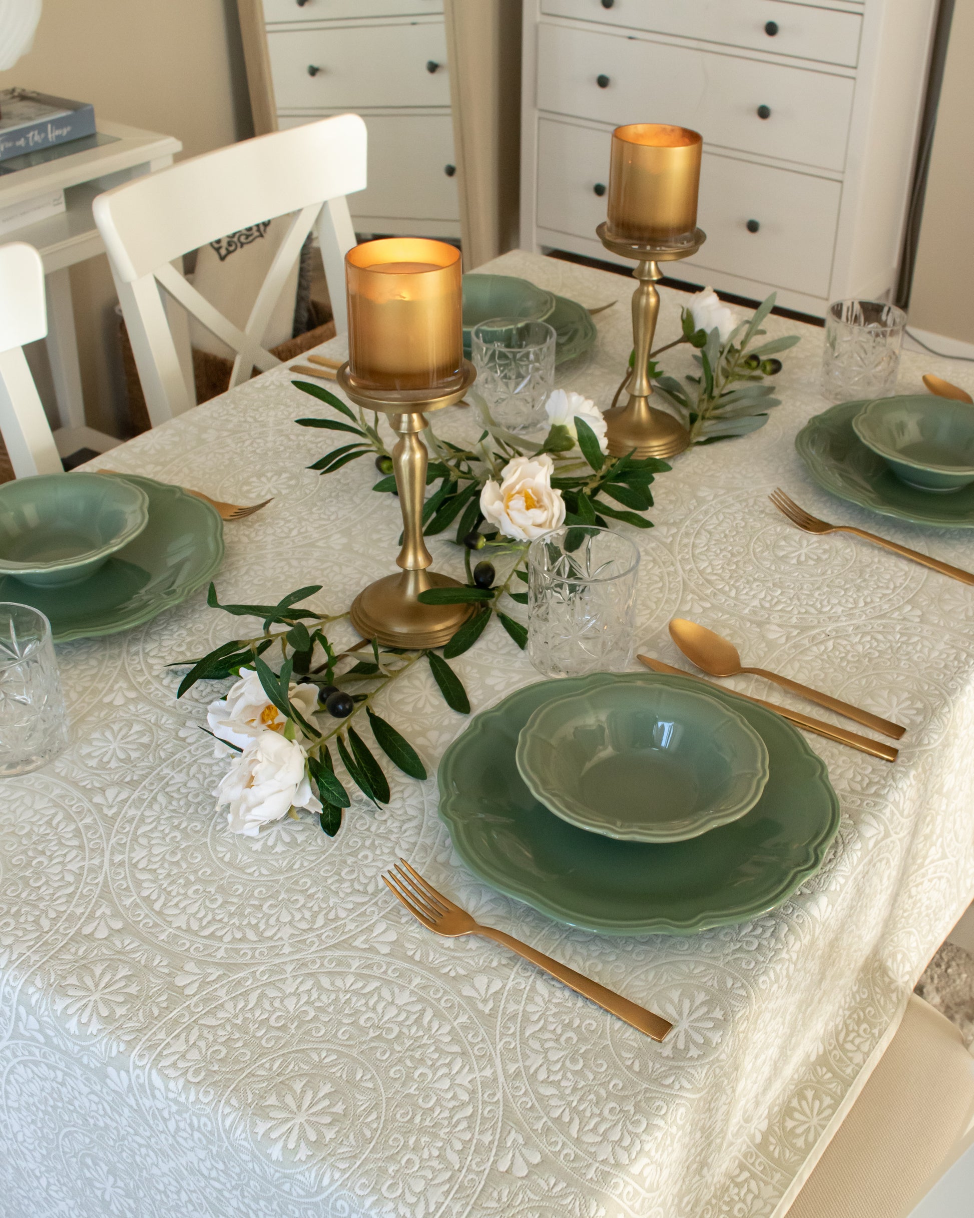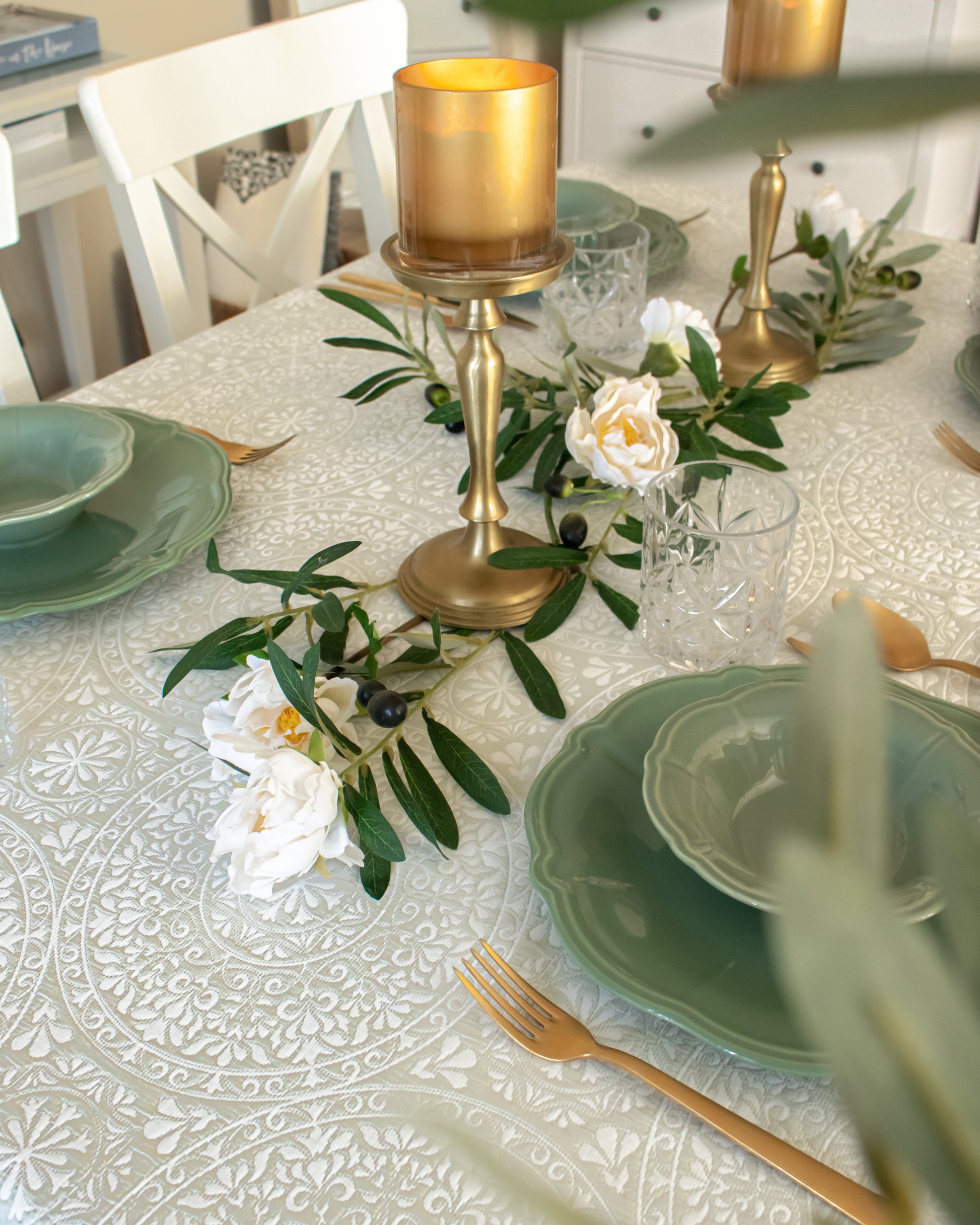 Transform your dining experience with Medallion, a double faced contemporary take on traditional medallion motifs from Élégance Des Tables. This tablecloth blends classic elegance with modern aesthetics, creating a stylish, sophisticated addition to your table. With its balanced floral and geometric patterns, Medallion adds a touch of refined charm to any dining setting, perfect for both everyday dining and special occasions. Elevate your space with this exquisite, high-quality tablecloth that seamlessly combines tradition with a modern twist.