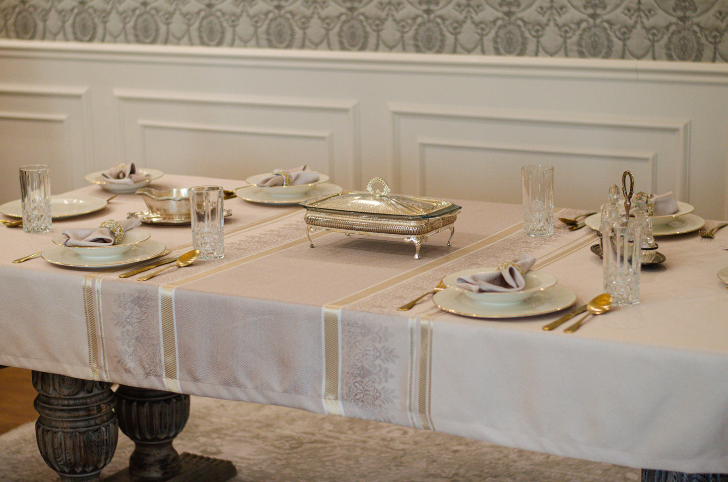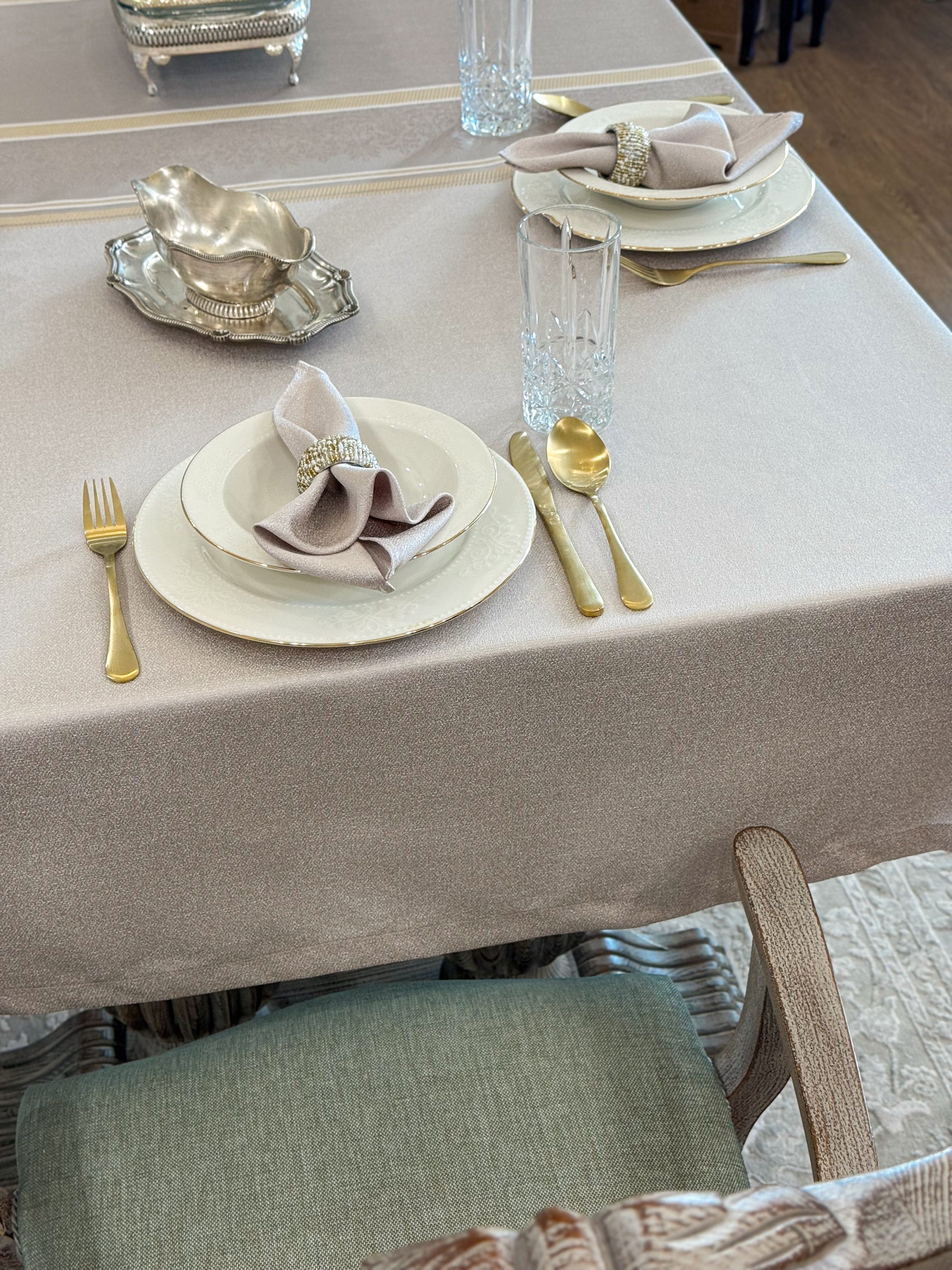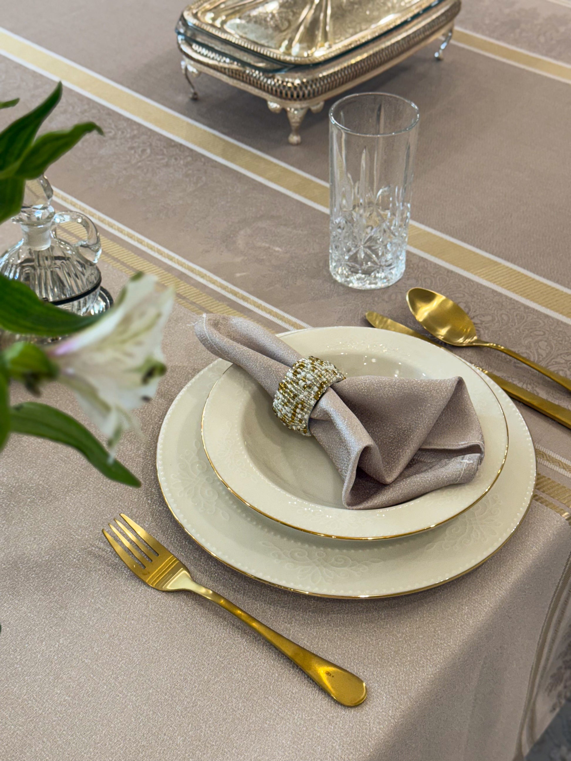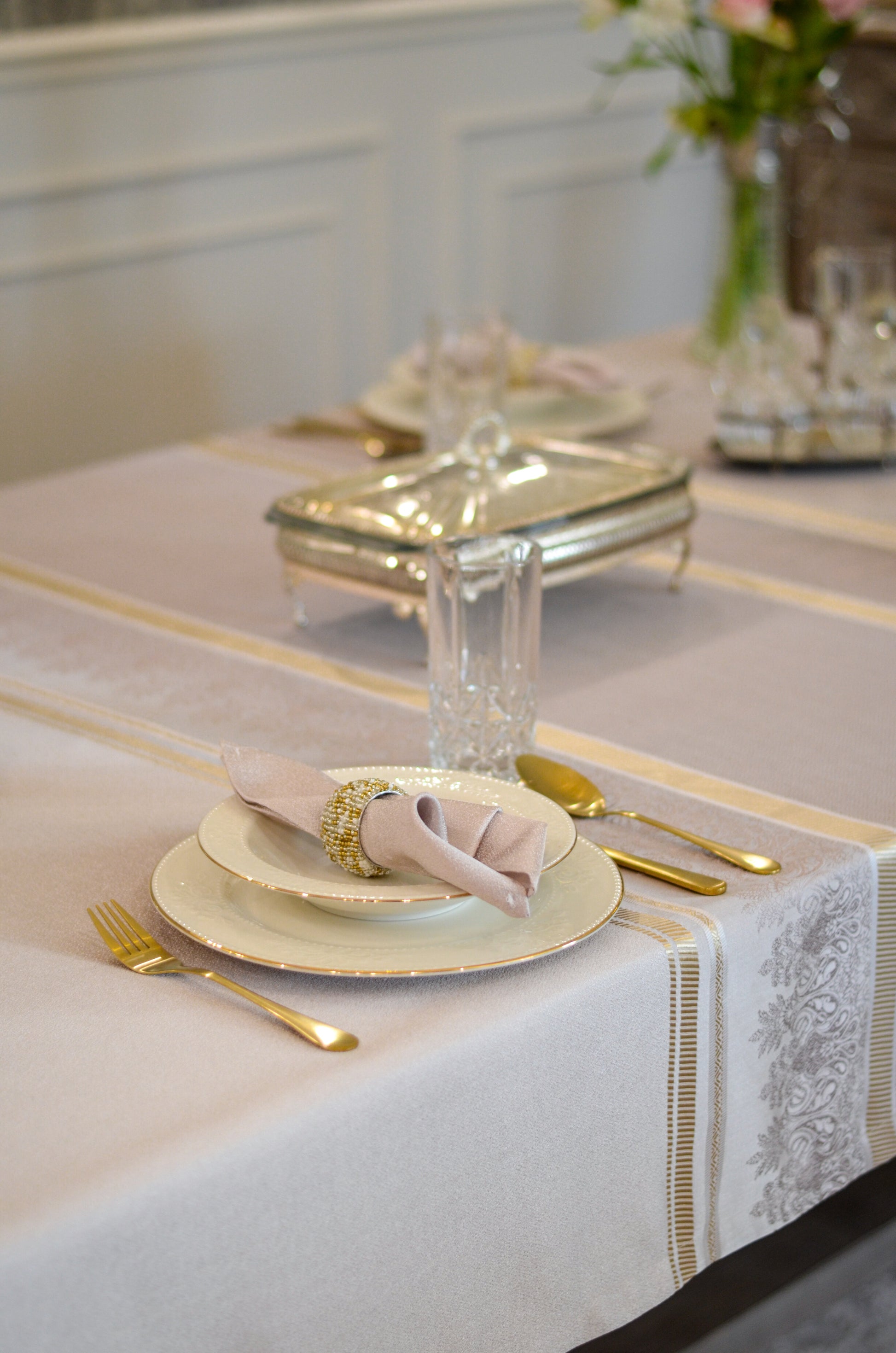 Transform your dining table with the Rococo Grace tablecloth from Élégance Des Tables. This luxurious tablecloth features a rich, intricate Rococo pattern that redefines elegance and adds timeless sophistication to any dining setting. Perfect as a beautiful layer under your tableware to create a luxurious tablescape, and for everyday use as an elegant décor in your dining room. Shop now to elevate your dining experience.