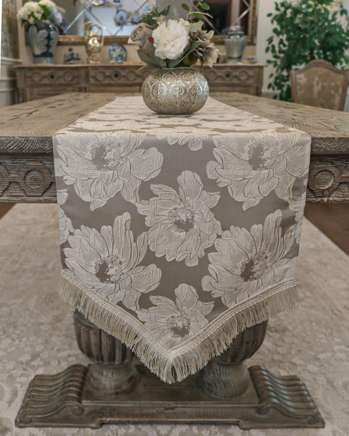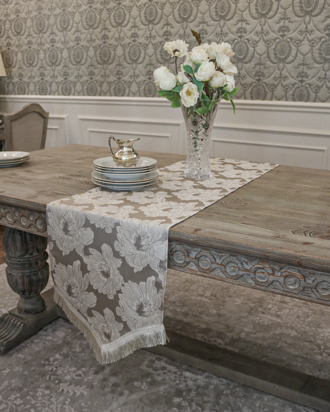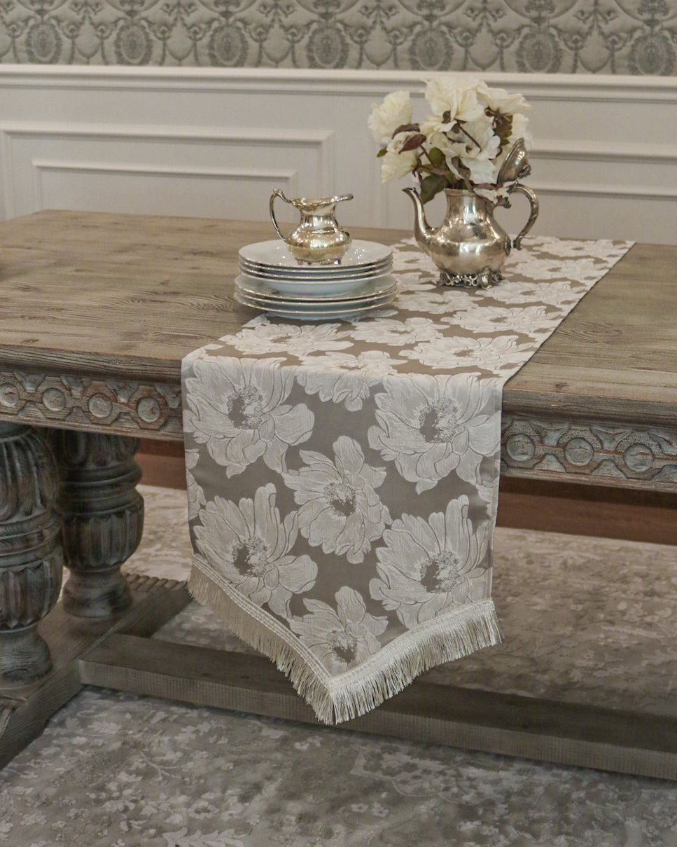 Set the table for an unforgettable experience with the Rosette runner from Élégance Des Tables. This exquisite design features a stunning floral pattern that captures the essence of romance and elegance, making it perfect for a touch of sophistication to your everyday dining decor. Shop now to enhance your home with this high-quality runner that showcases timeless beauty and classic style.