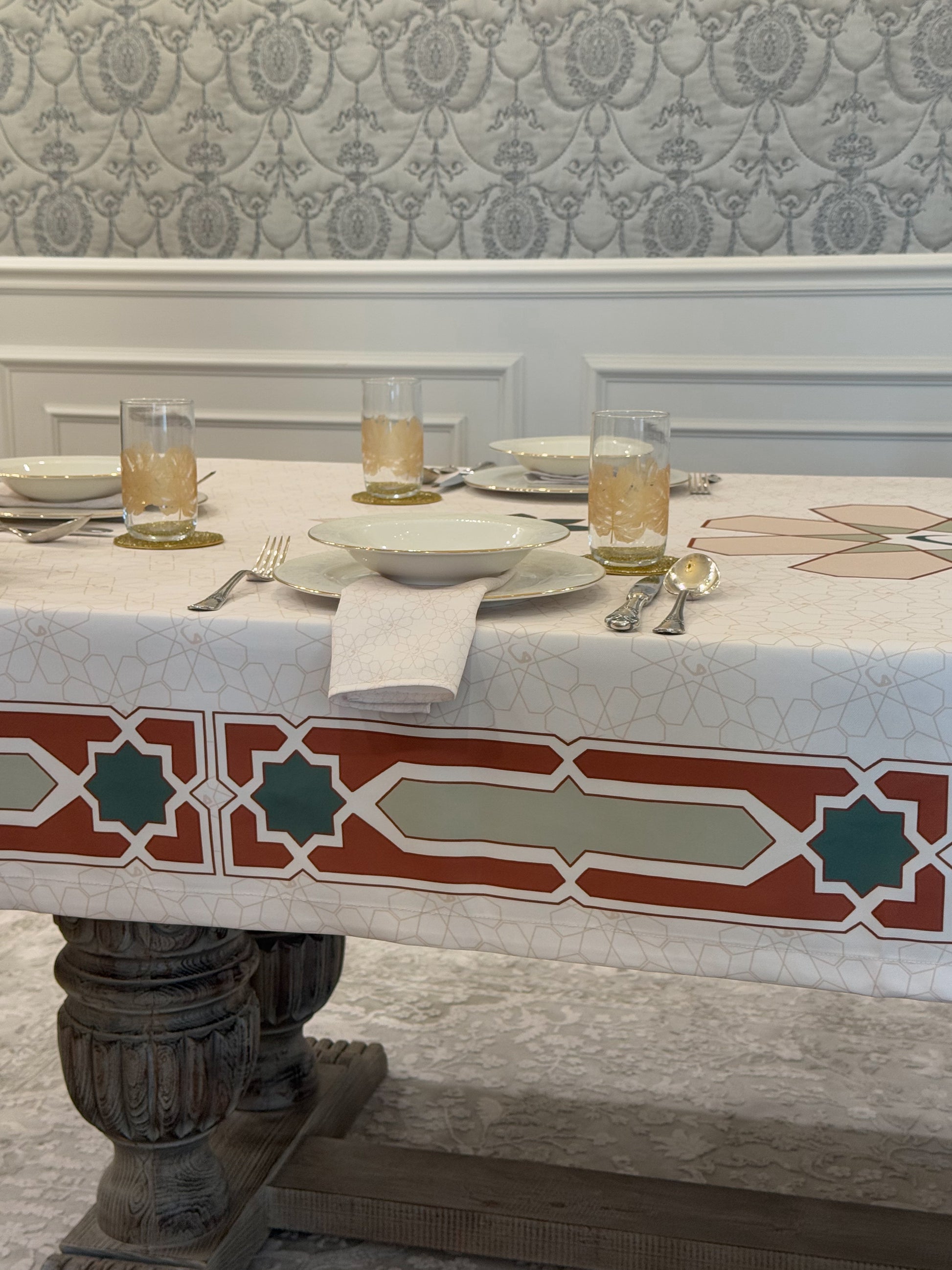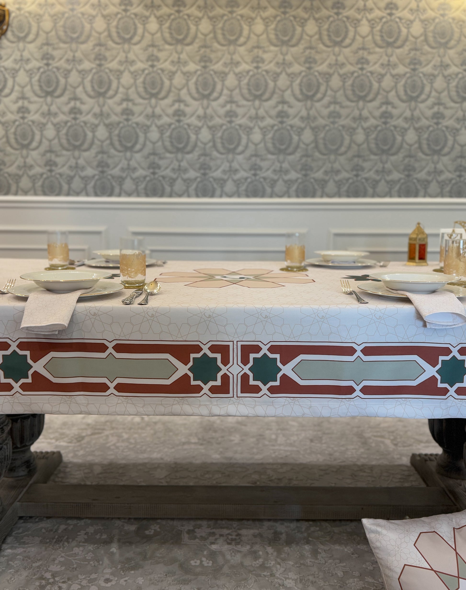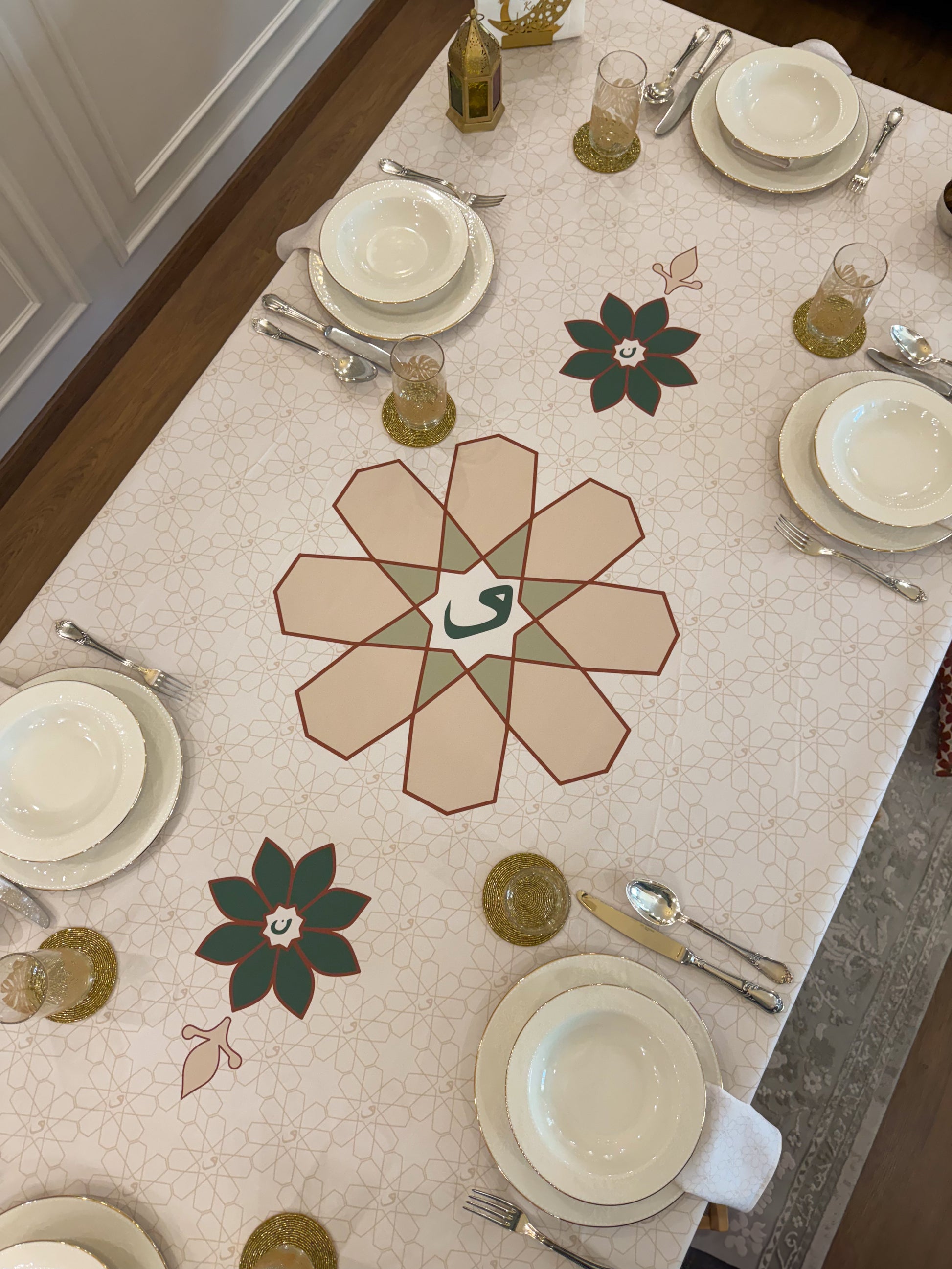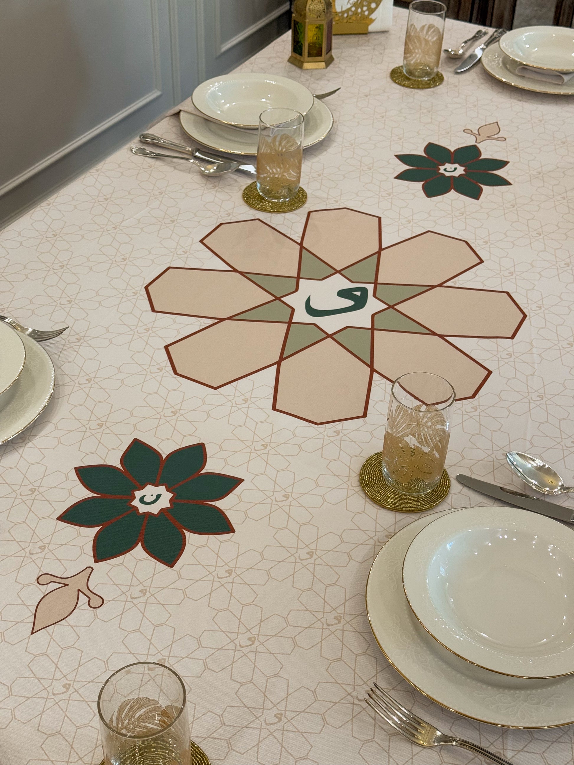 Designed for moments of generosity and togetherness, this refined tablecloth creates an inviting setting where family and loved ones come together to break their fast. Crafted with precision and elegance, Najm transforms your space into a warm and welcoming haven, making every Ramadan evening truly special.