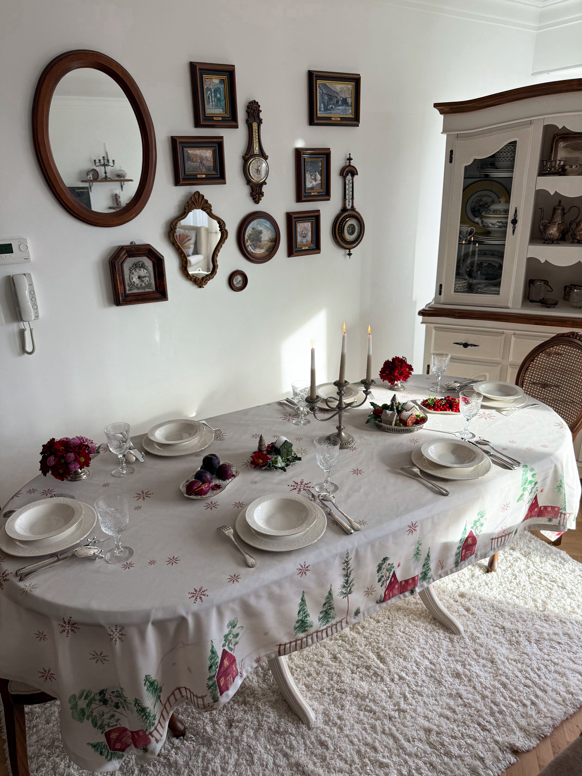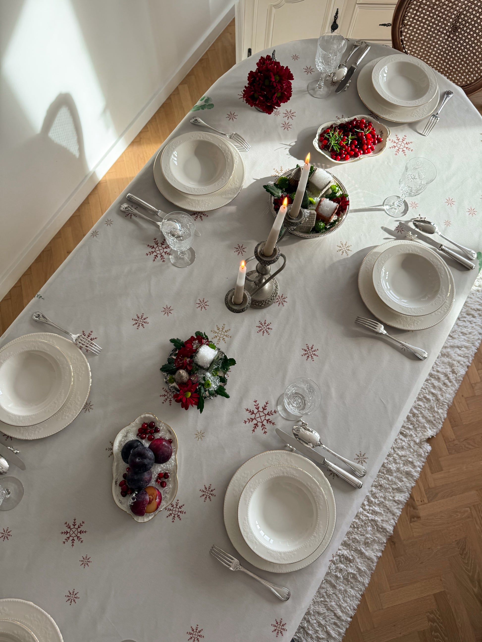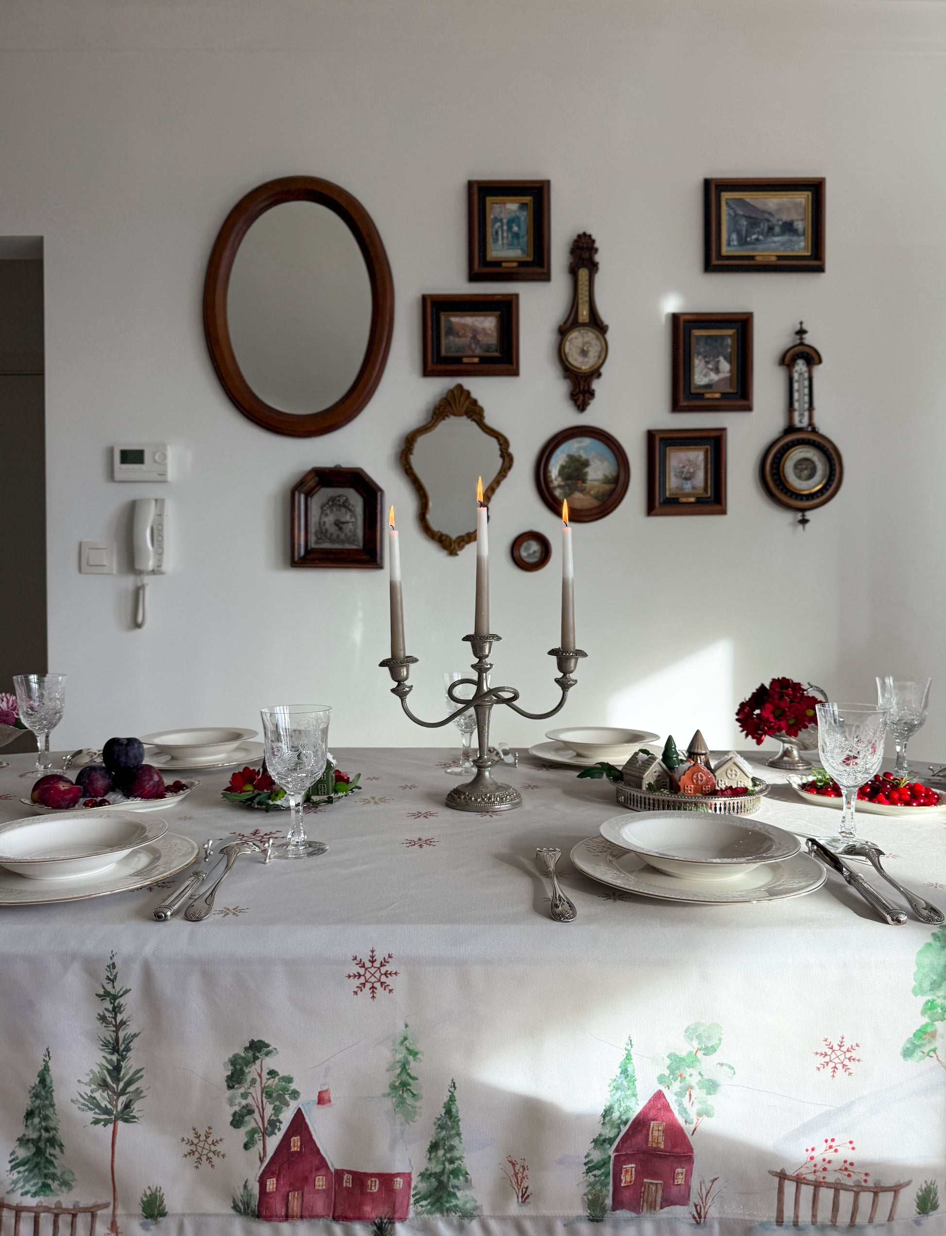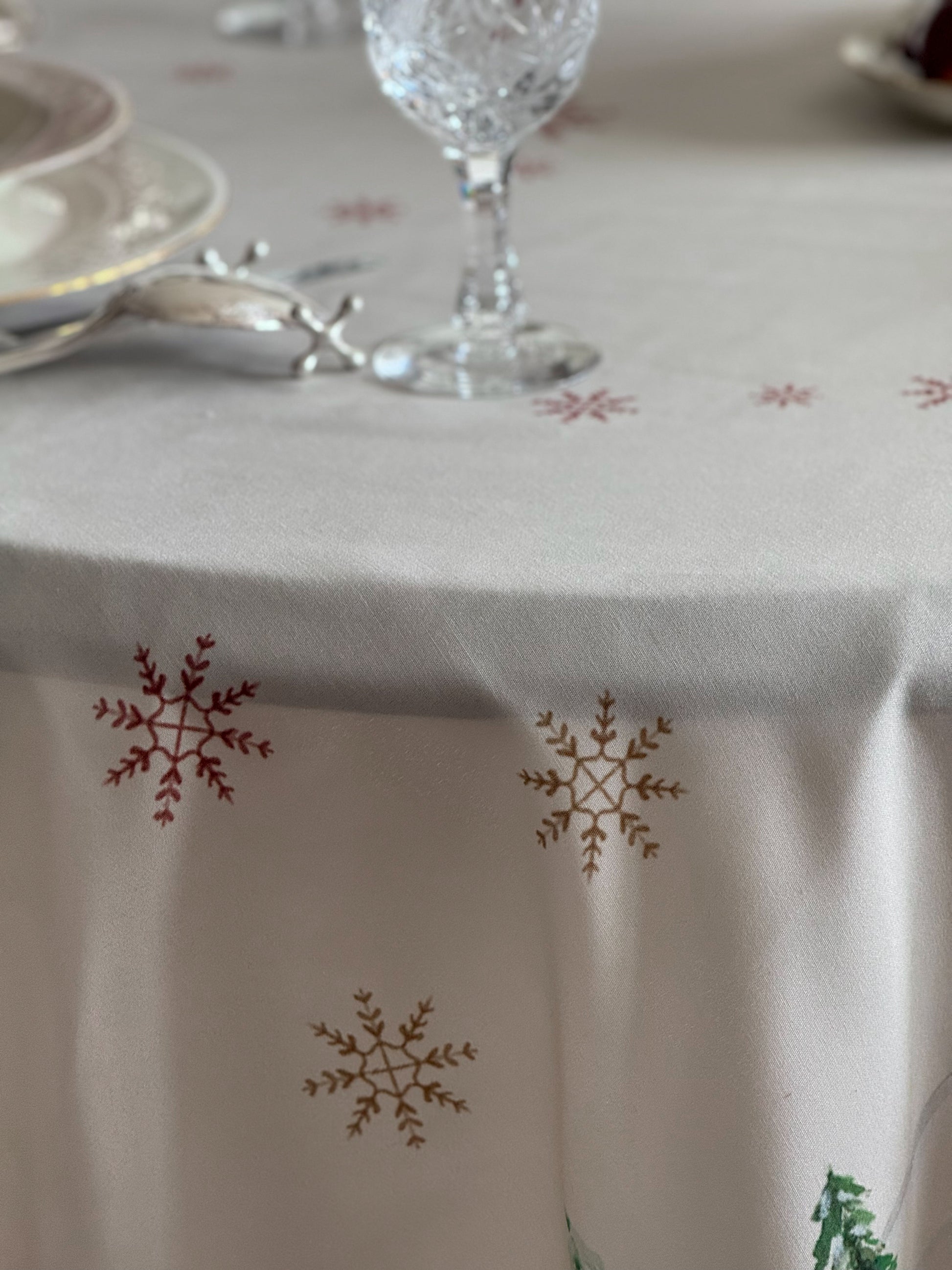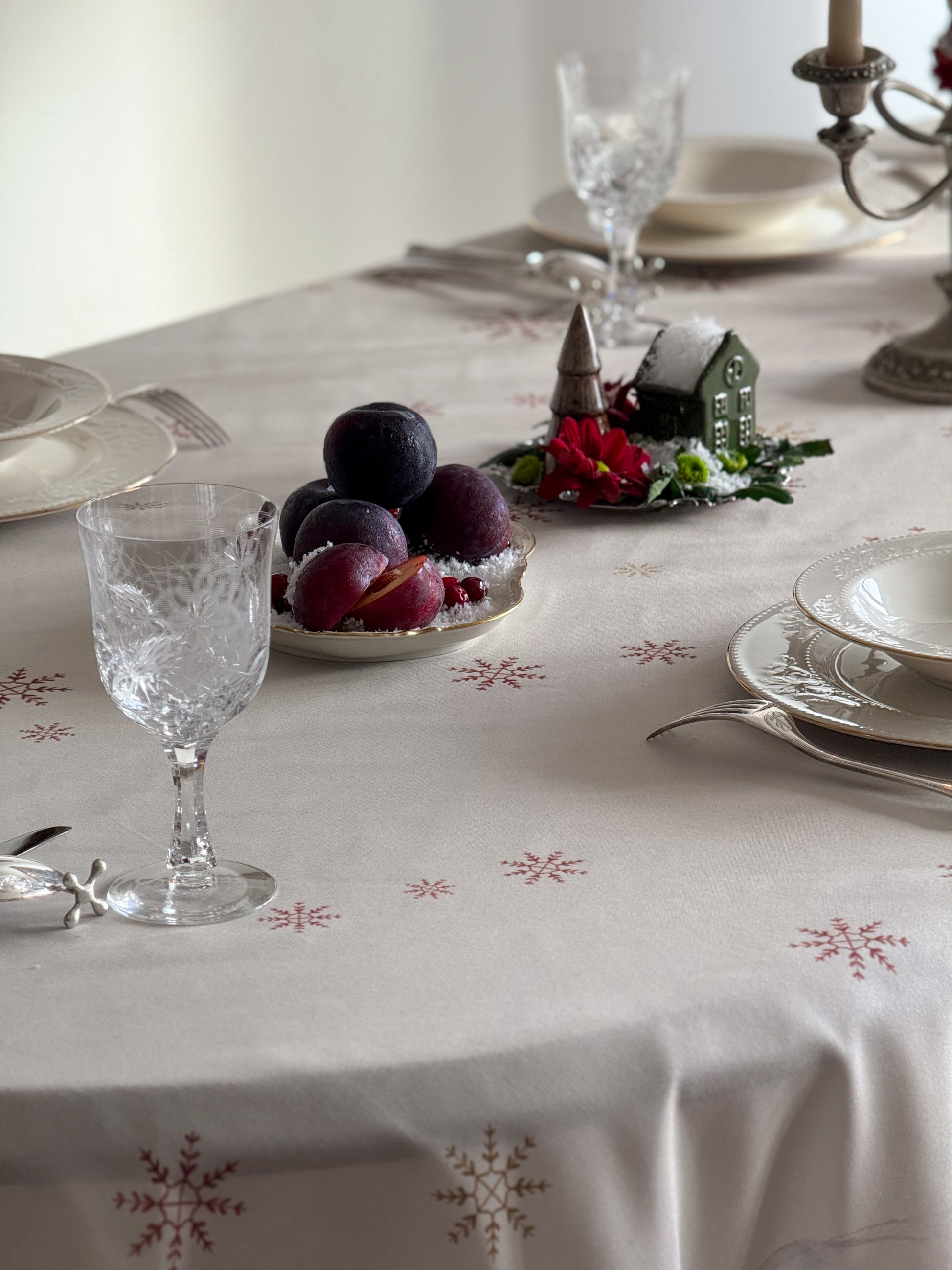 Bring winter magic to your table with Snow Reverie, a hand-painted watercolor tablecloth created by artist Emy’s Aquarelle. Inspired by a dreamy village tucked beneath snow-covered mountains, its delicate cabins, evergreens, and drifting snowflakes bring a soft, magical glow to your table. Thoughtfully designed to warm winter gatherings and New Year festivities, Snow Reverie transforms every meal into a cozy seasonal moment filled with artistry and wonder.