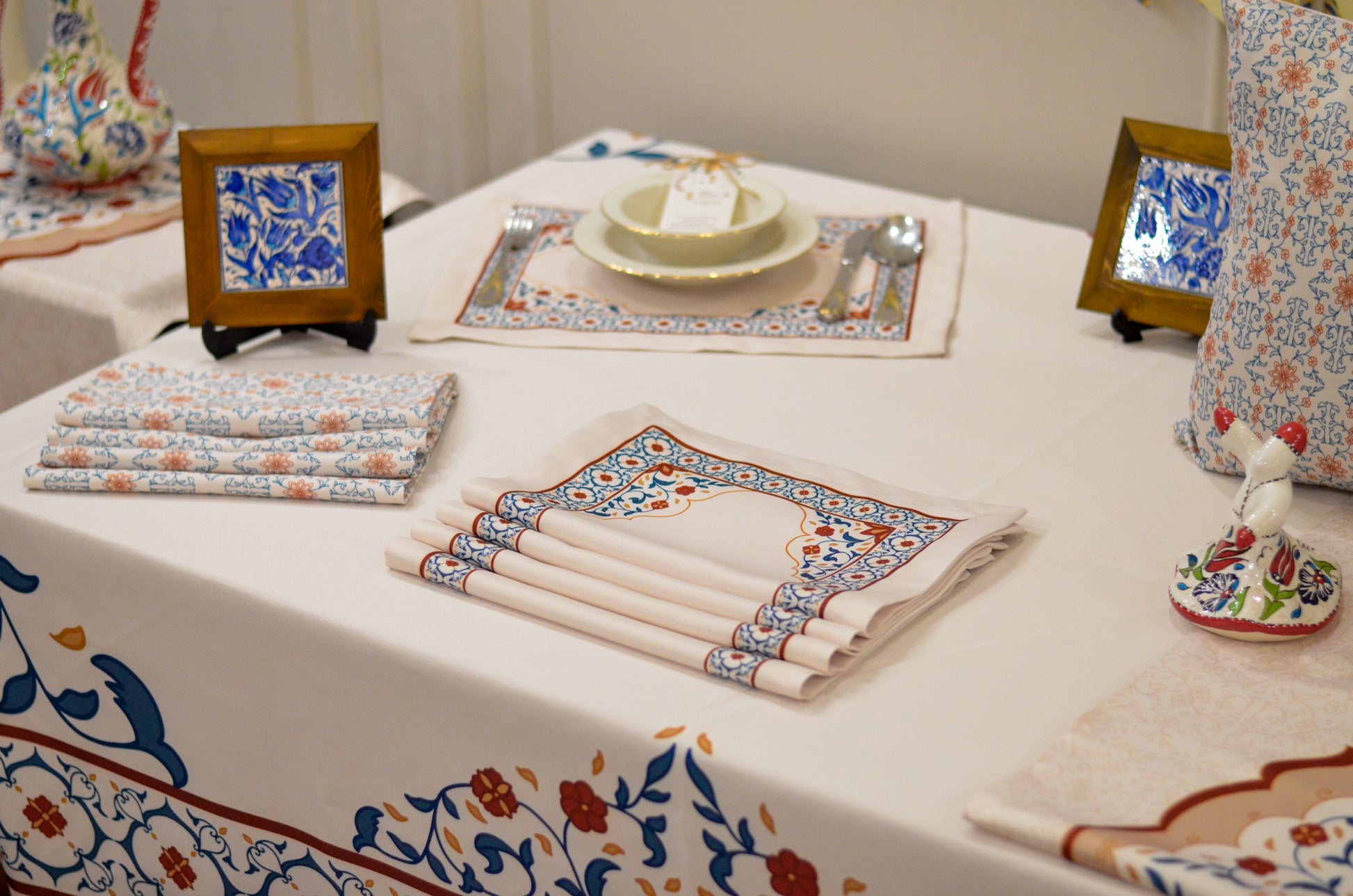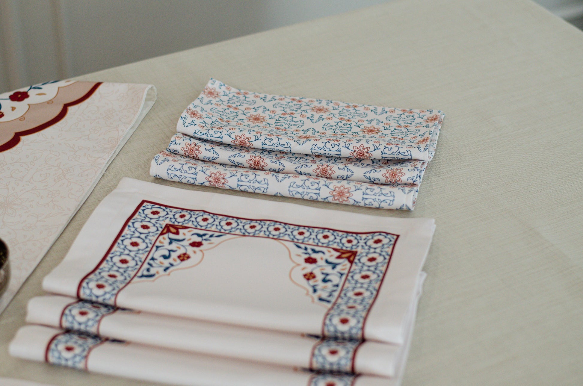 Designed to create an inviting atmosphere of generosity and togetherness, the Zahra placemats and napkins enhance your table with refined beauty. This set pairs perfectly with the Zahra table runner, completing a harmonious and sophisticated arrangement. Crafted with meticulous attention to detail, it transforms your space into a hospitable haven, making every Ramadan evening truly special.